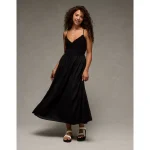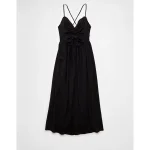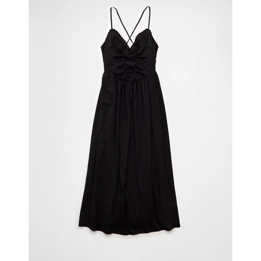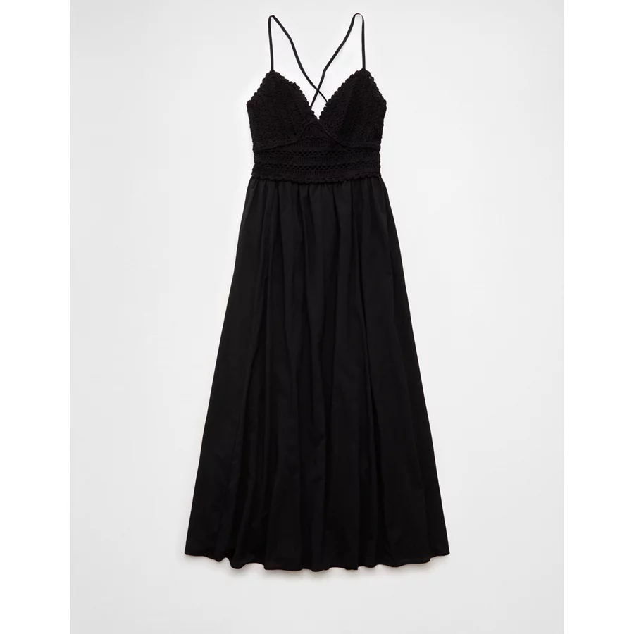 AE V-Neck Crochet Midi Dress – Black