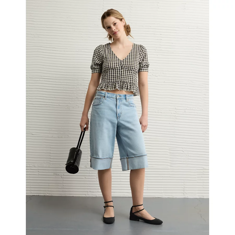 AE 8″ Dreamy Drape Stretch Low-Rise Baggy Jort – Medium Bright Indigo