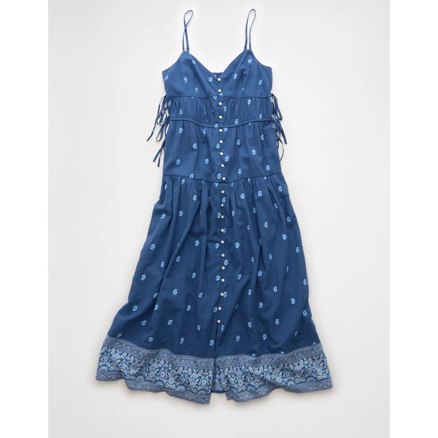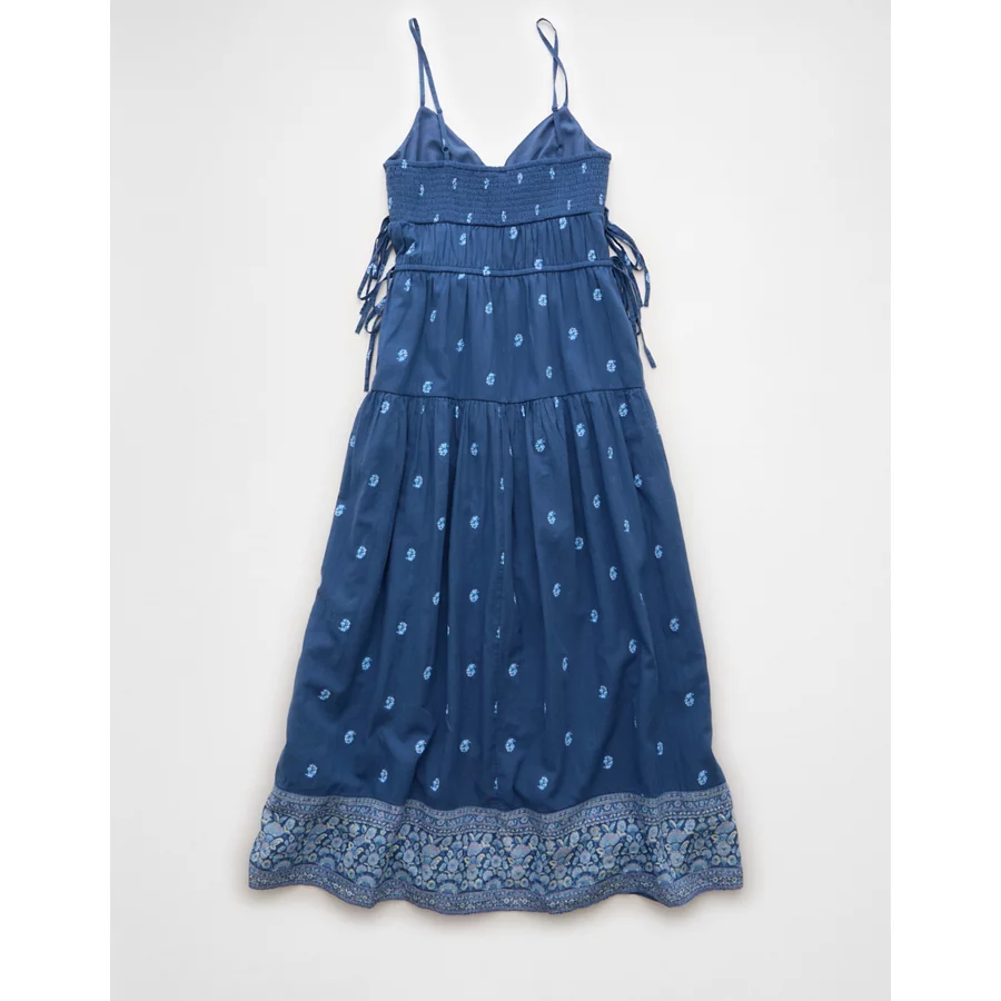 AE V-Neck Side Tie Midi Dress – Blue Vibe