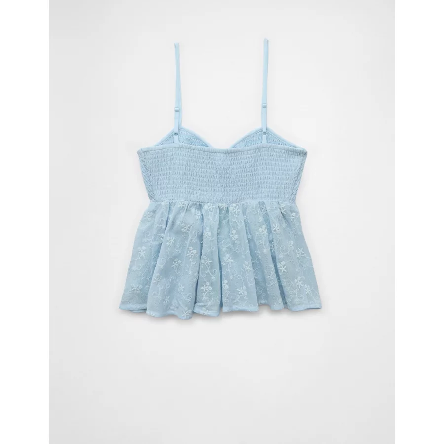 AE V-Neck Smocked Babydoll Cami – Light Blue