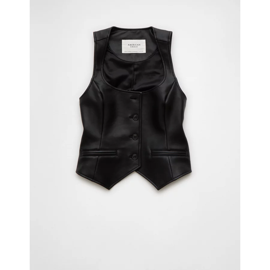 Vegan leather with stretch 96% Polyester, 4% SpandexHand washImported Low rise | 11 3/4 front rise15 inseam28 leg opening
