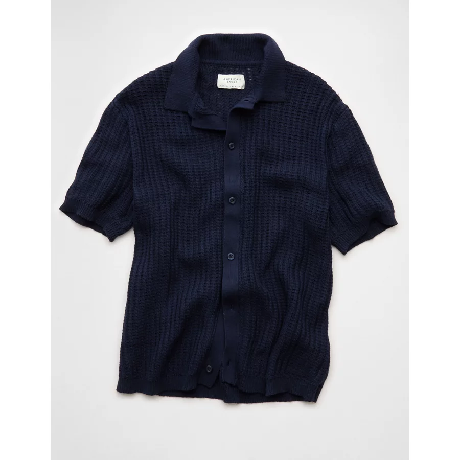 AE Weekend Button-Up Sweater Polo Shirt – Rich Navy
