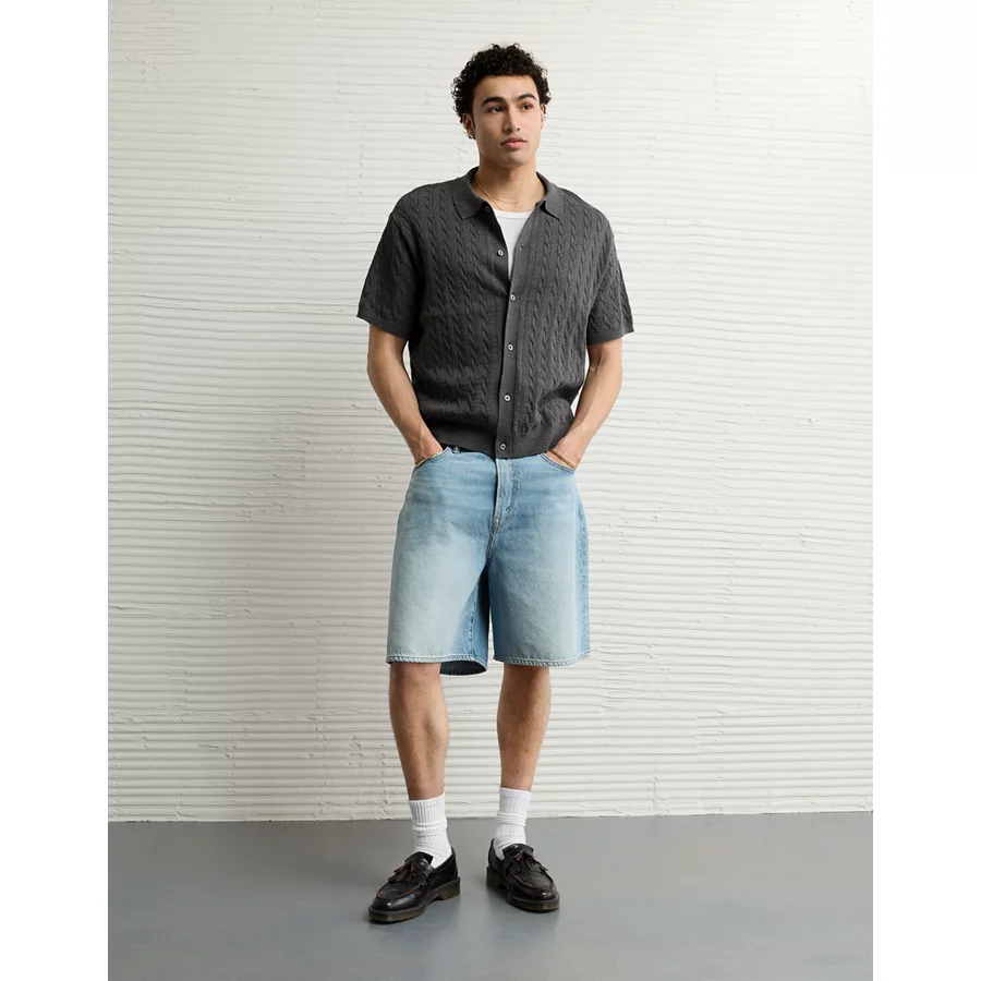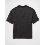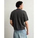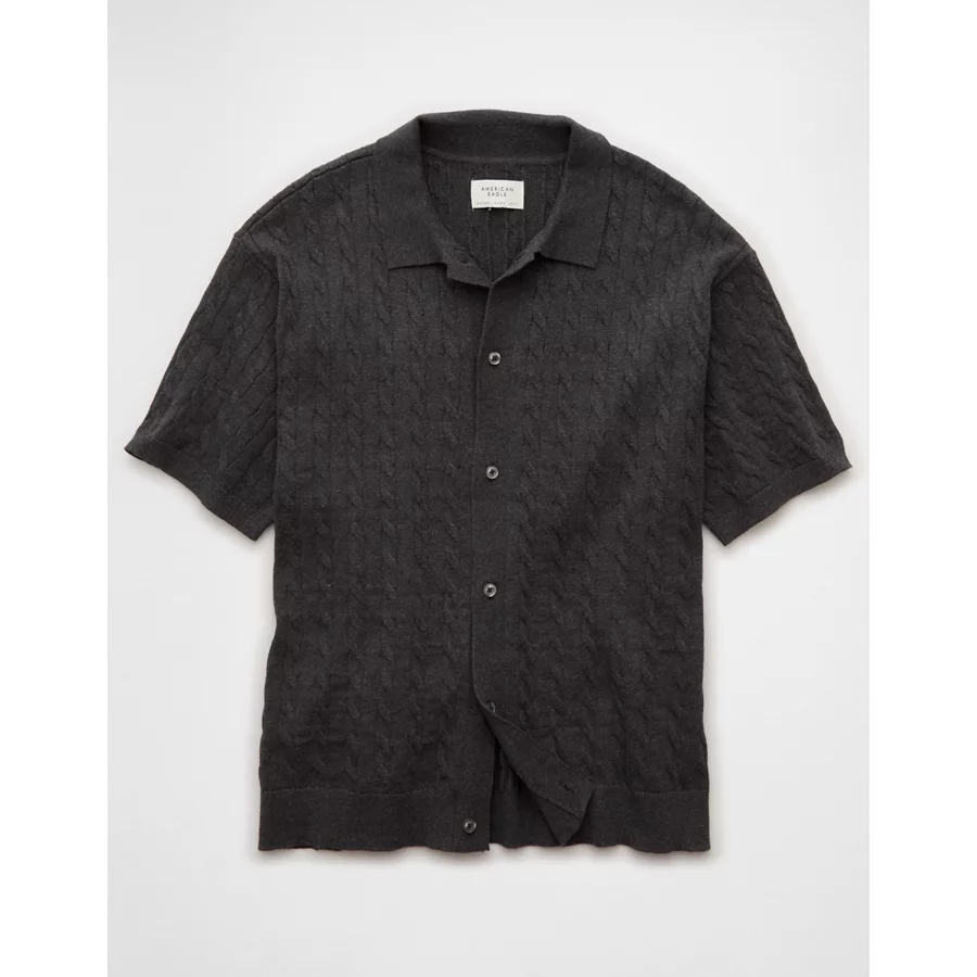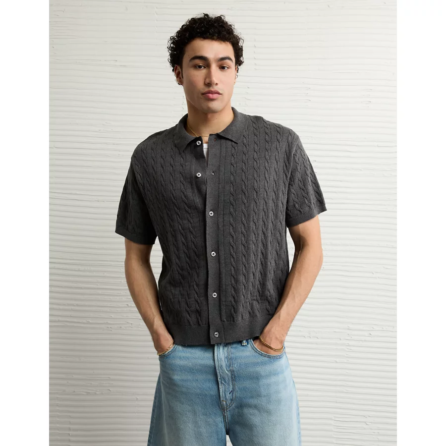 AE Weekend Cable Knit Button-Up Sweater Polo Shirt – Charcoal Heather