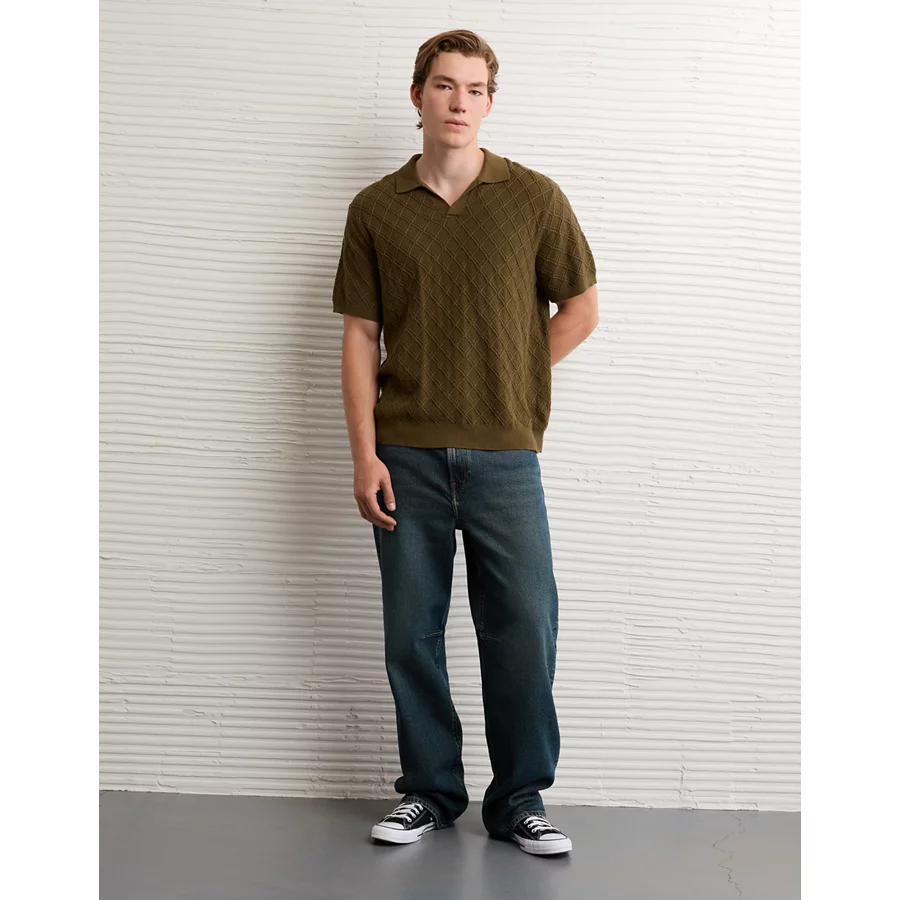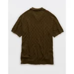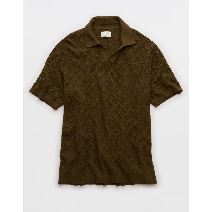 AE Weekend Cable Knit Sweater Polo Shirt – Olive