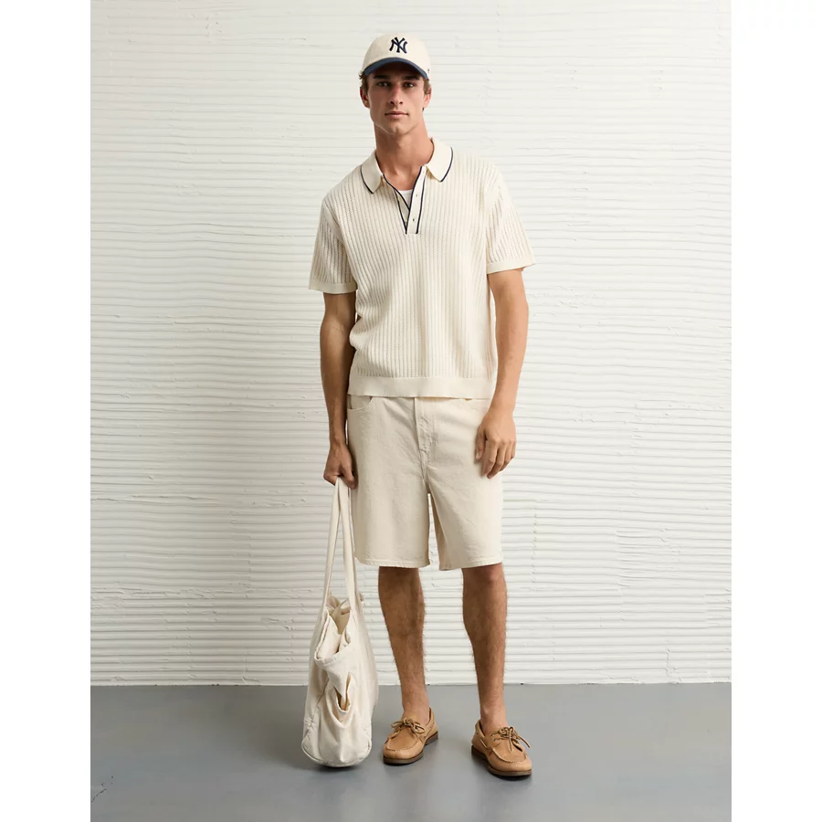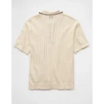 AE Weekend Tipped Sweater Polo Shirt – Cream