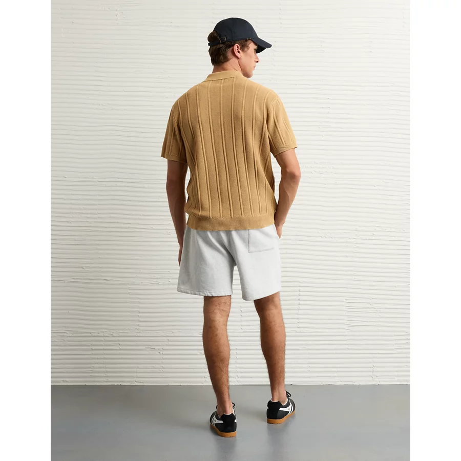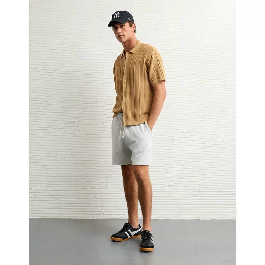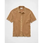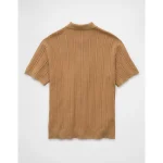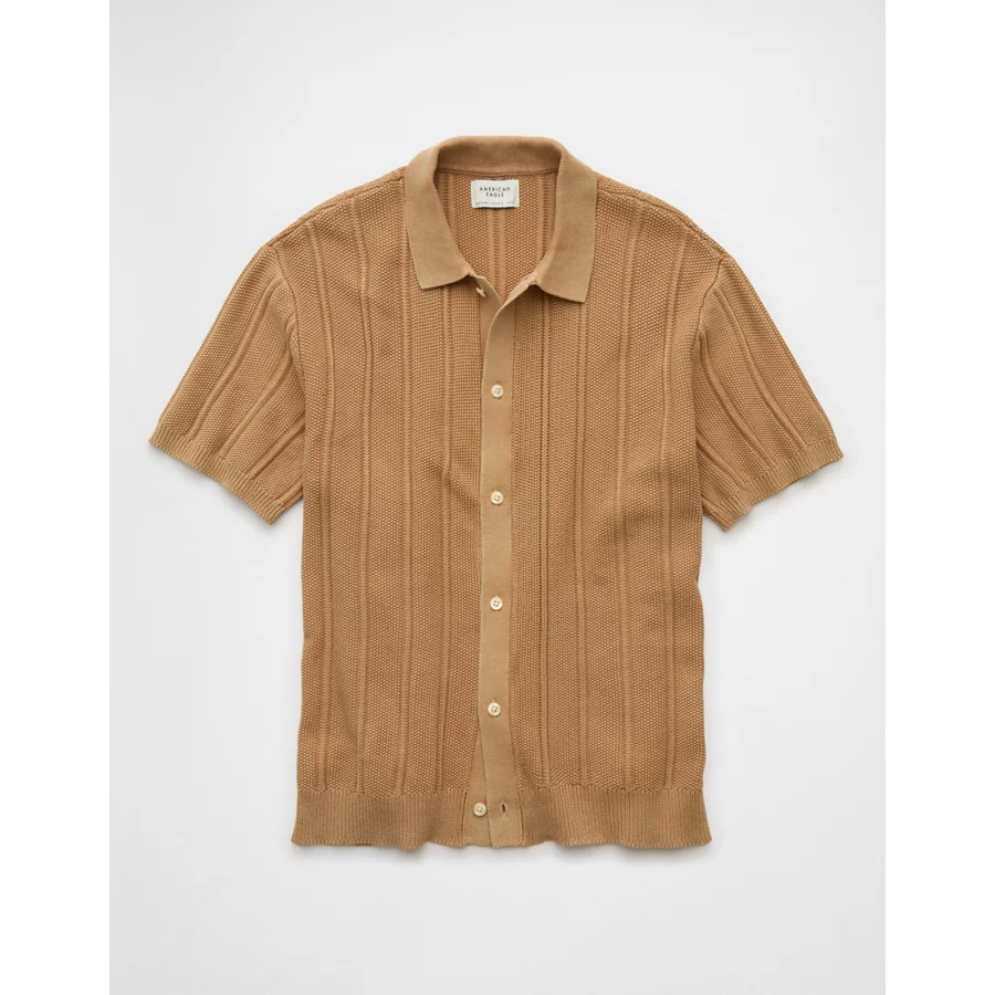 AE Weekend Washed Button-Up Sweater Polo Shirt – Khaki