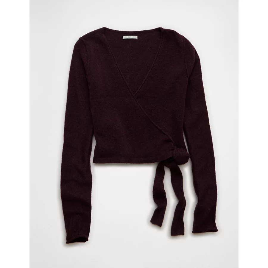 AE Whoa So Soft Ballet Wrap Sweater Top – Purple