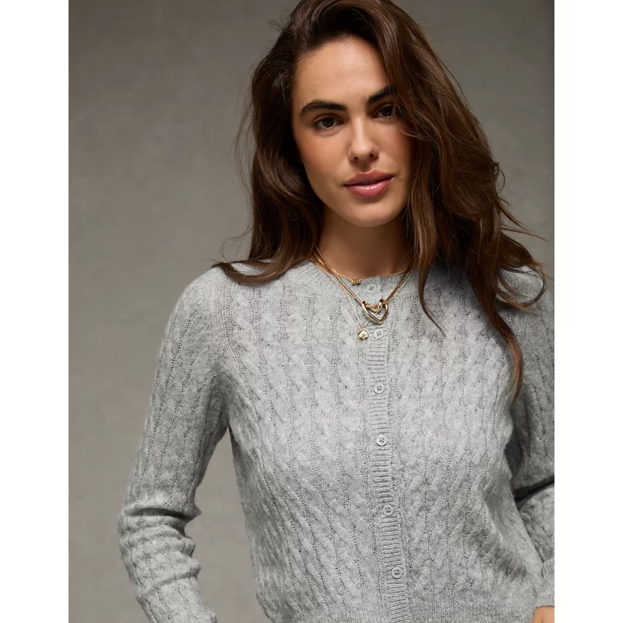AE Whoa So Soft Button-Front Cardigan – Light Gray