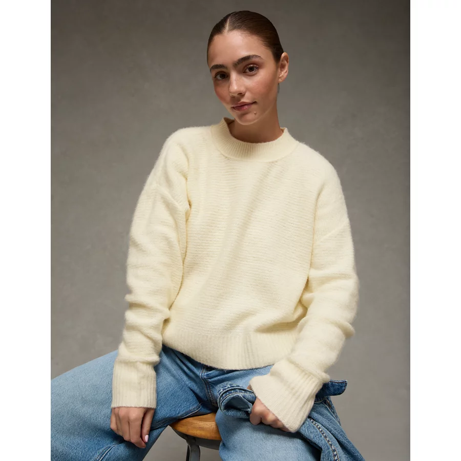AE Whoa So Soft Crew Neck Sweater – Cream