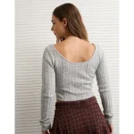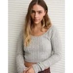 AE Whoa So Soft Cropped Scoop Neck Sweater – Medium Heather Gray