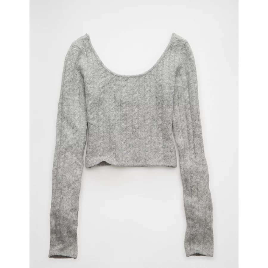 AE Whoa So Soft Cropped Scoop Neck Sweater - Grey