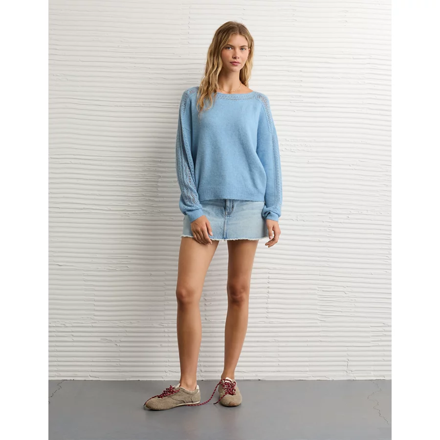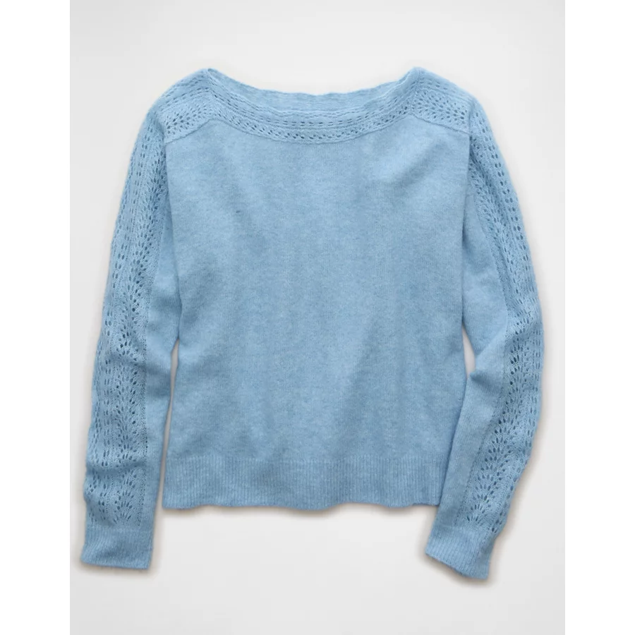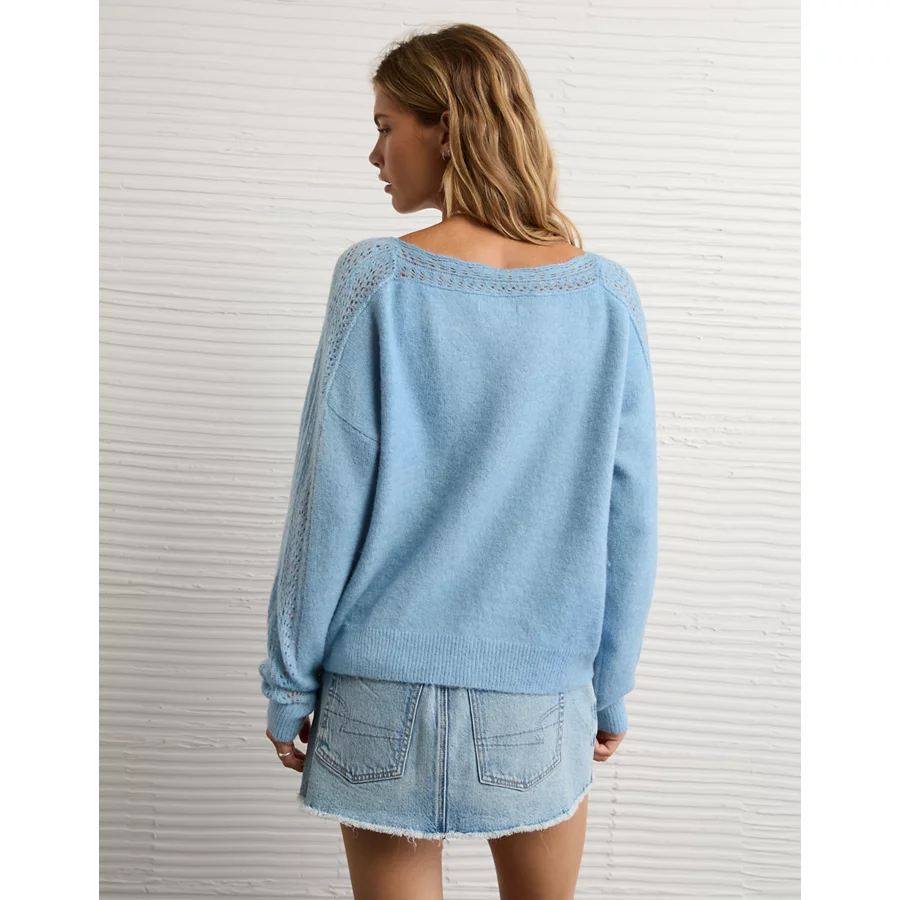 AE Whoa So Soft Lace Sweater – Blue Breeze
