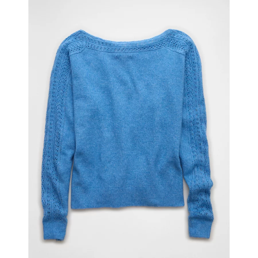 AE Whoa So Soft Lace Sweater – Gravity Blue