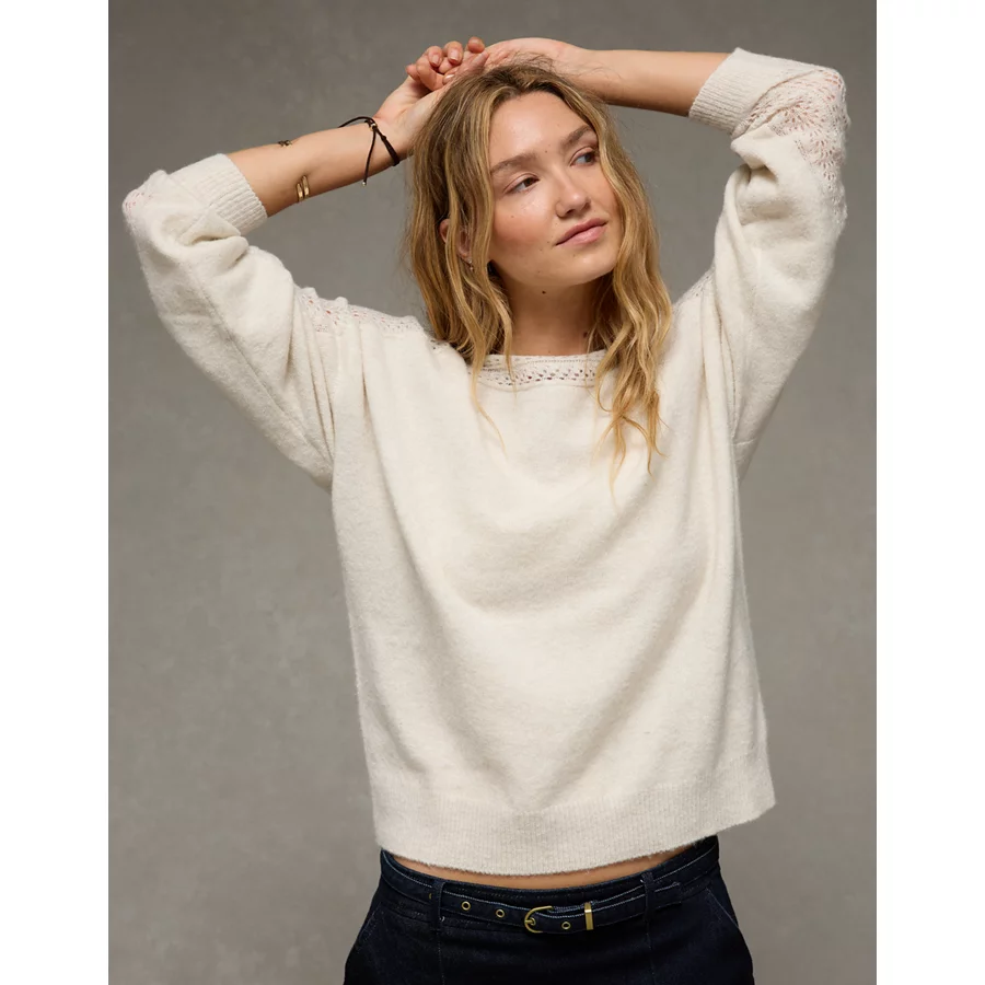 AE Whoa So Soft Lace Sweater – Oatmeal
