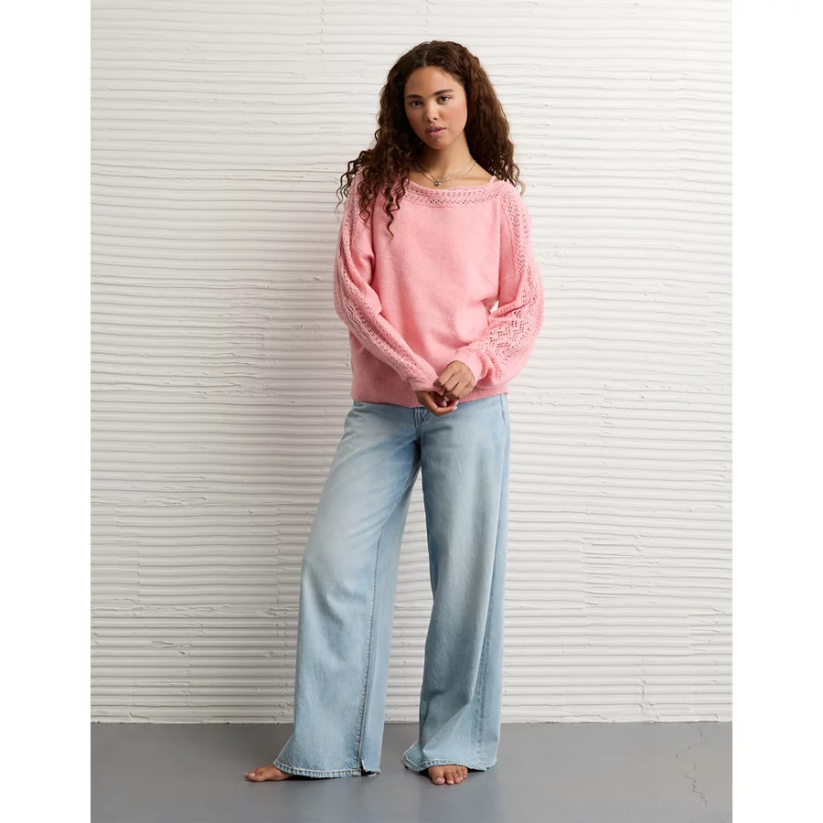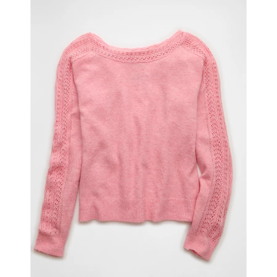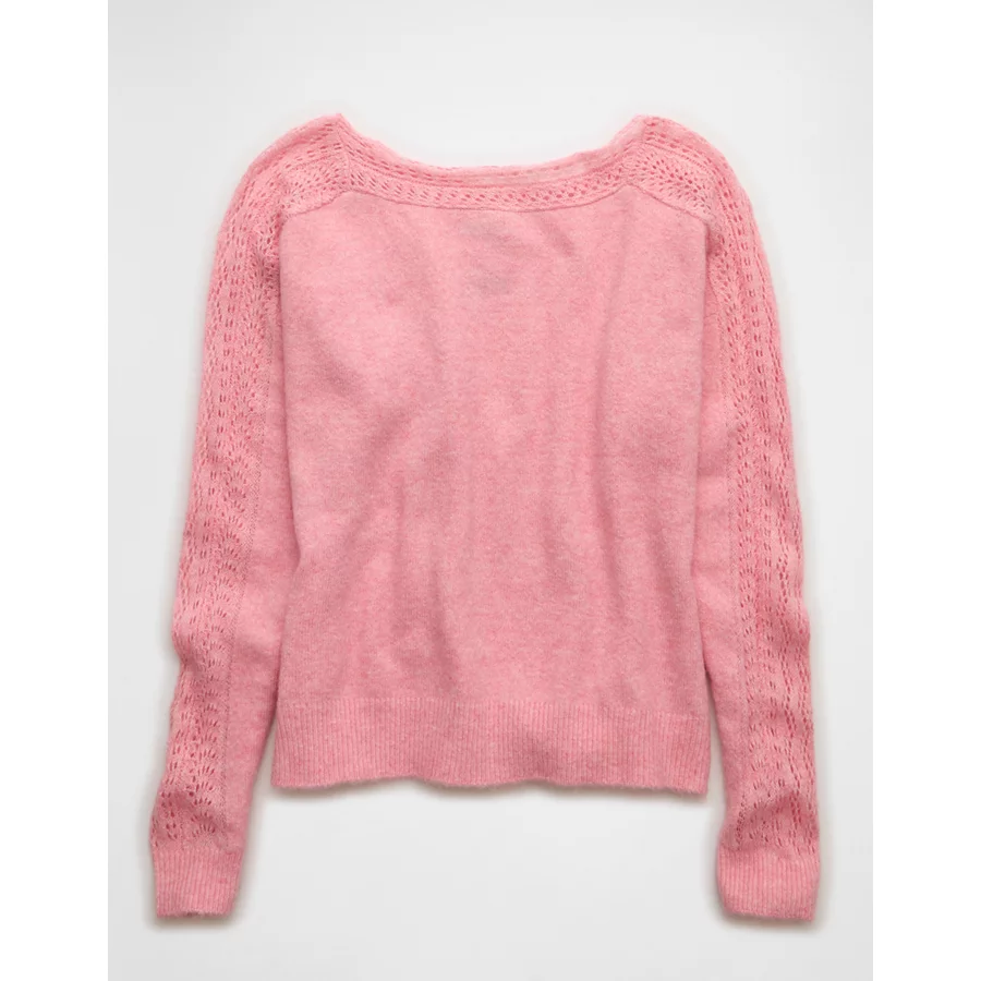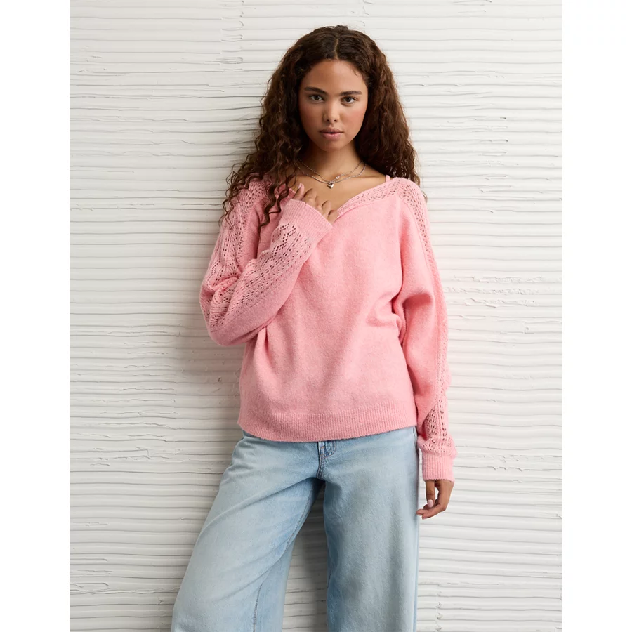 AE Whoa So Soft Oversized V-Neck Sweater - Charcoal Heather Gray