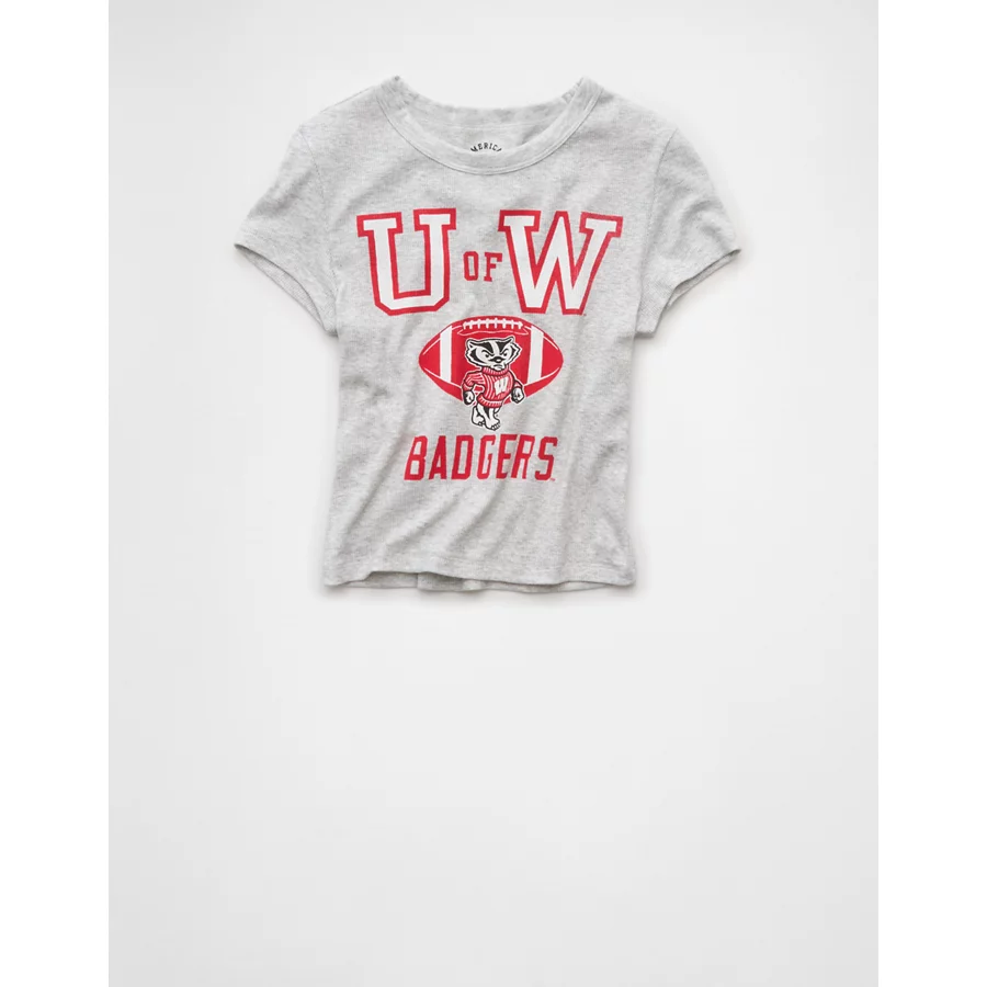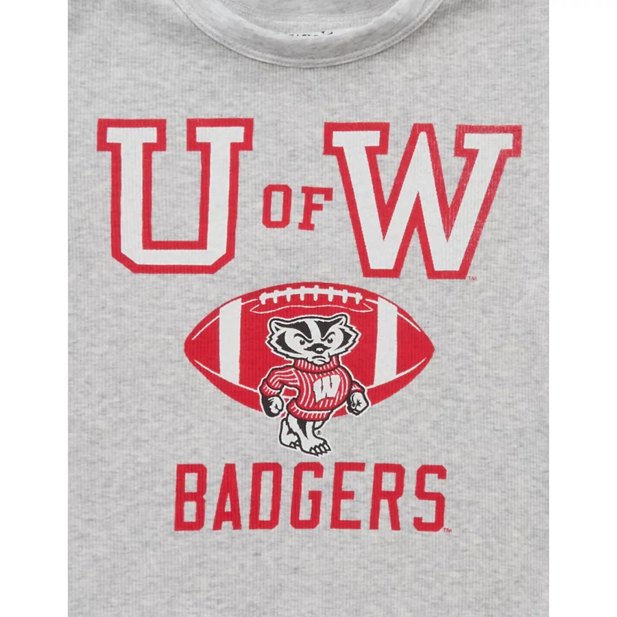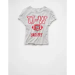 AE Wisconsin Badgers Graphic Cropped Baby Tee – Gray Heather