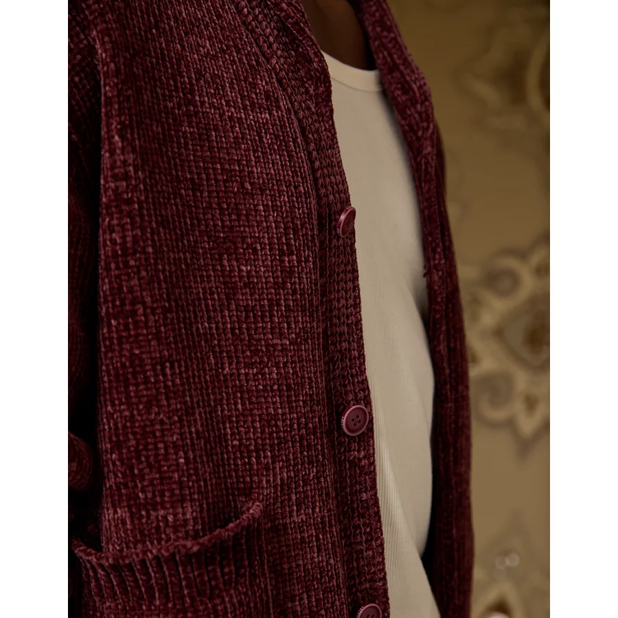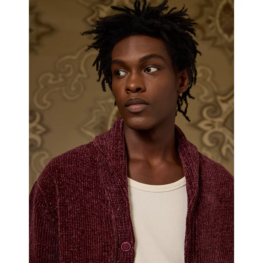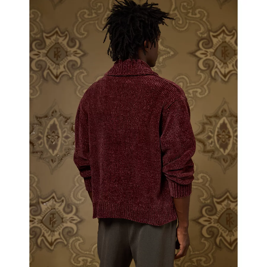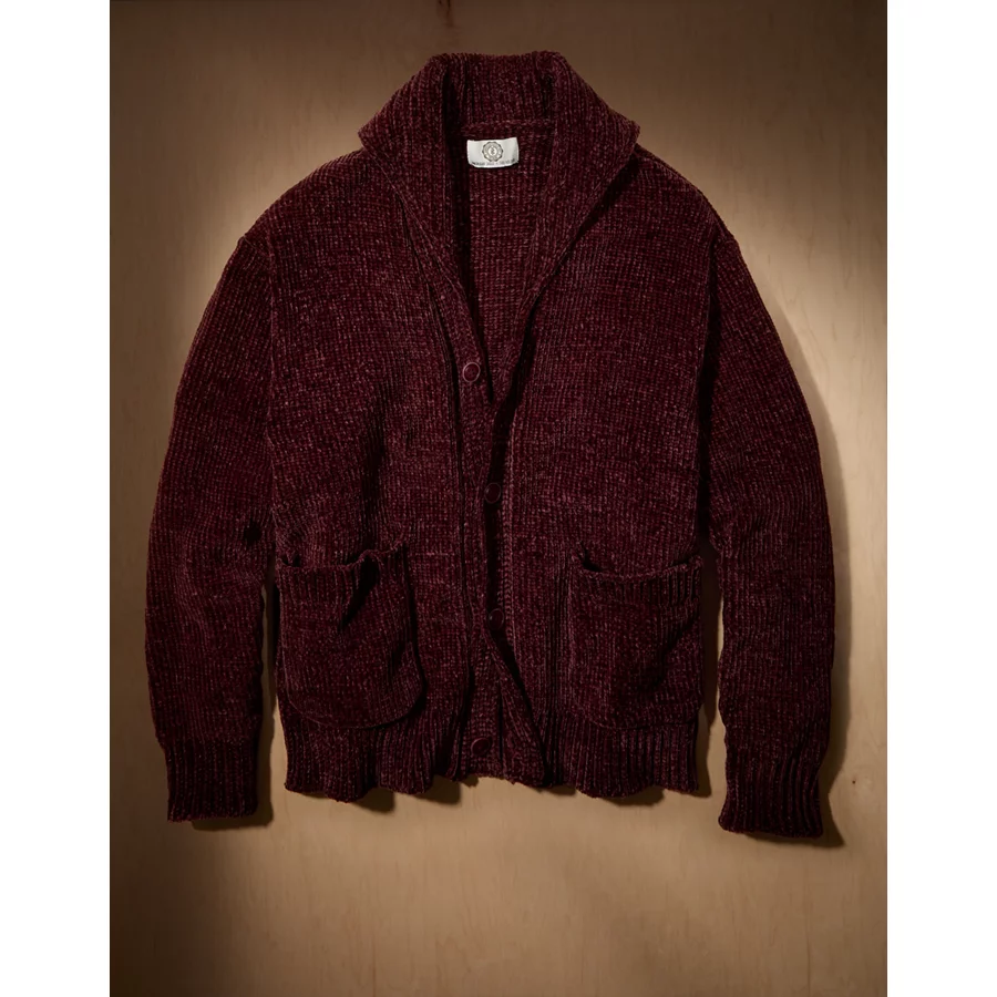 AE x Tru Kolors Chenille Shawl Collar Cardigan – Burgundy