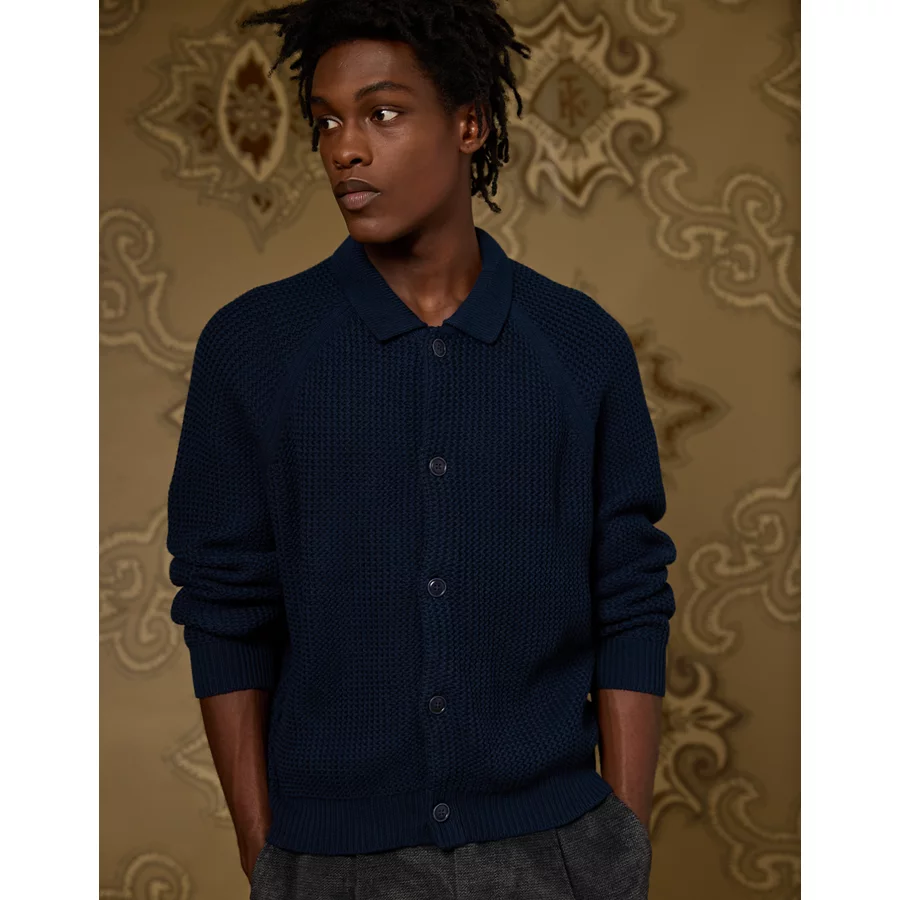 AE x Tru Kolors Cotton Button-Front Cardigan – Navy
