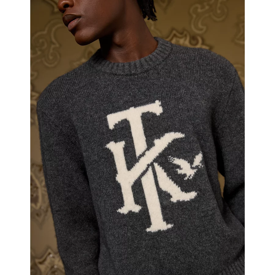 AE x Tru Kolors Wool-Cashmere Crew Neck Sweater – Charcoal Heather