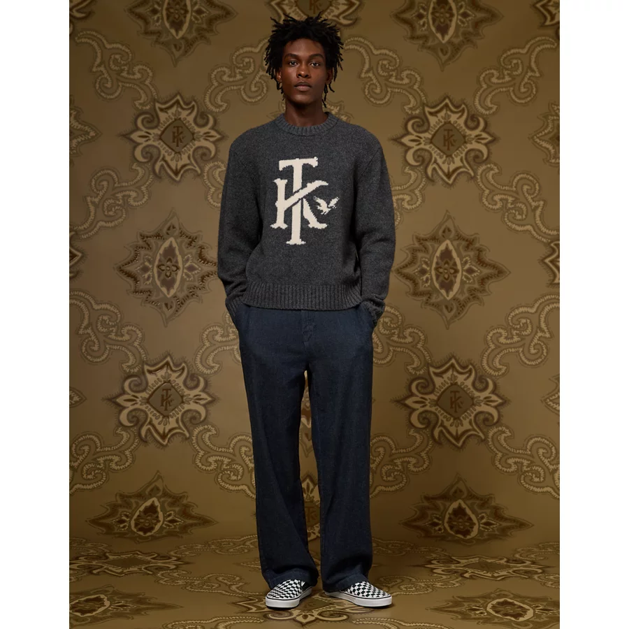 Intarsia-knit AE x Tru Kolors design at front