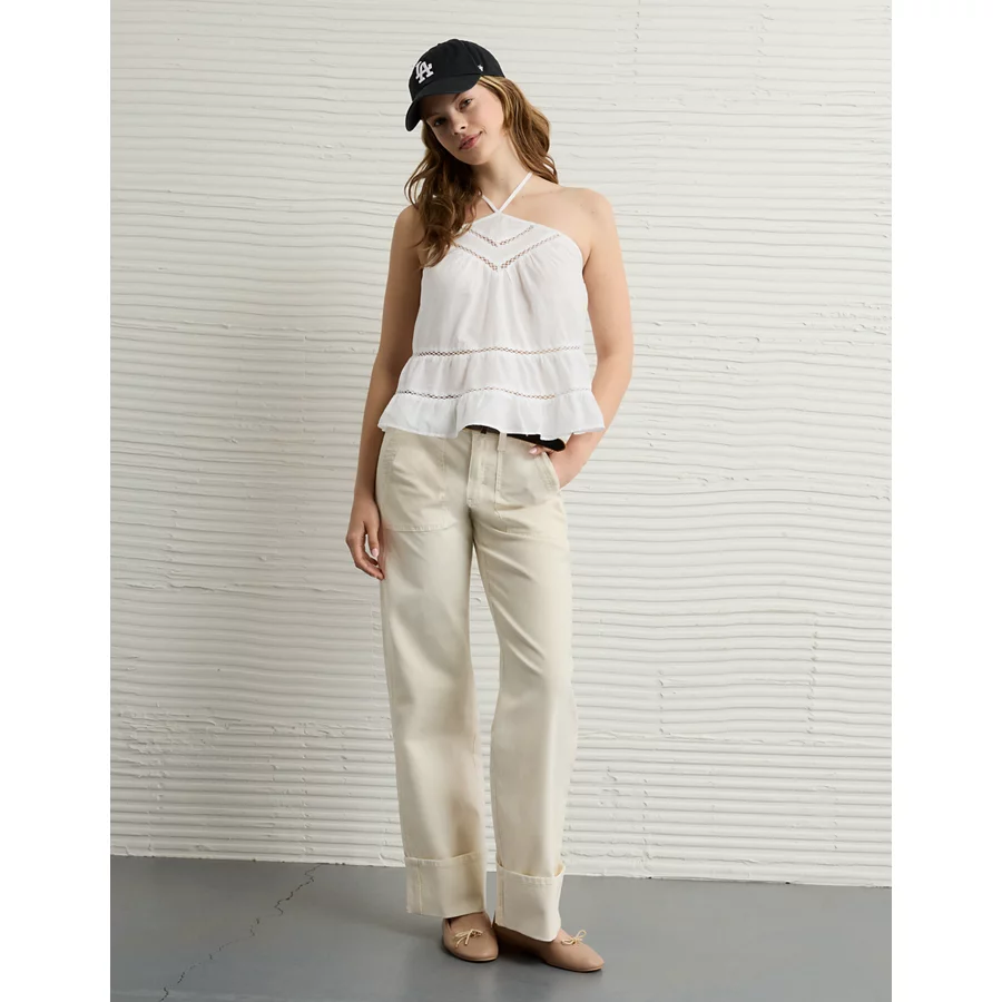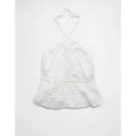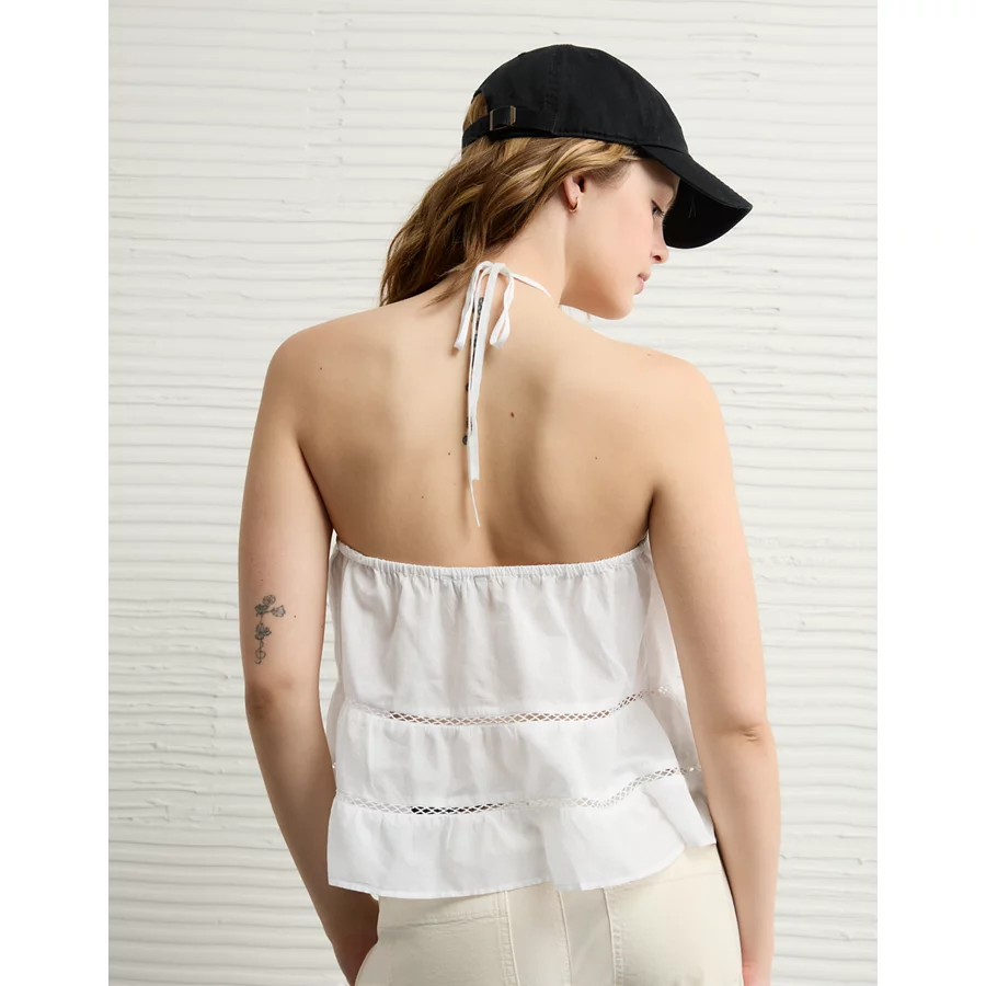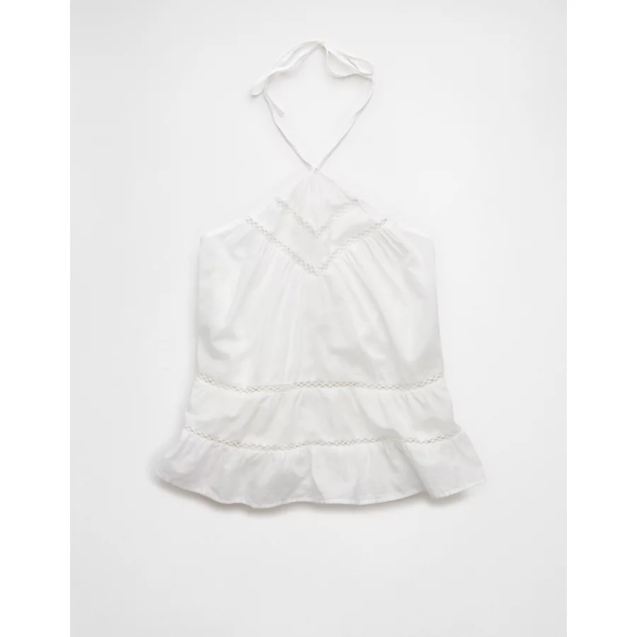 AE Y-Neck Lacy Halter Top – White