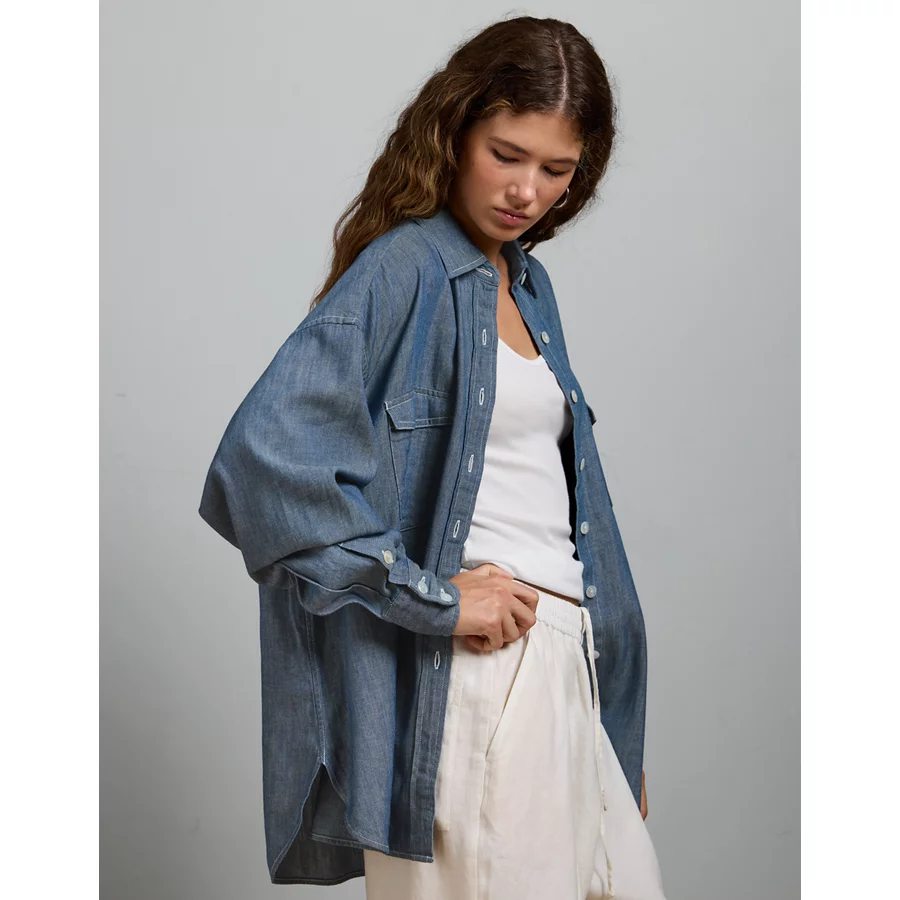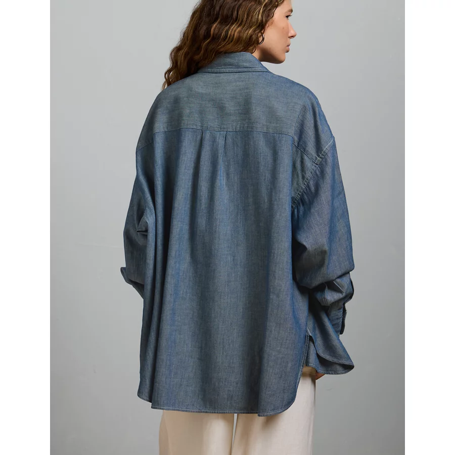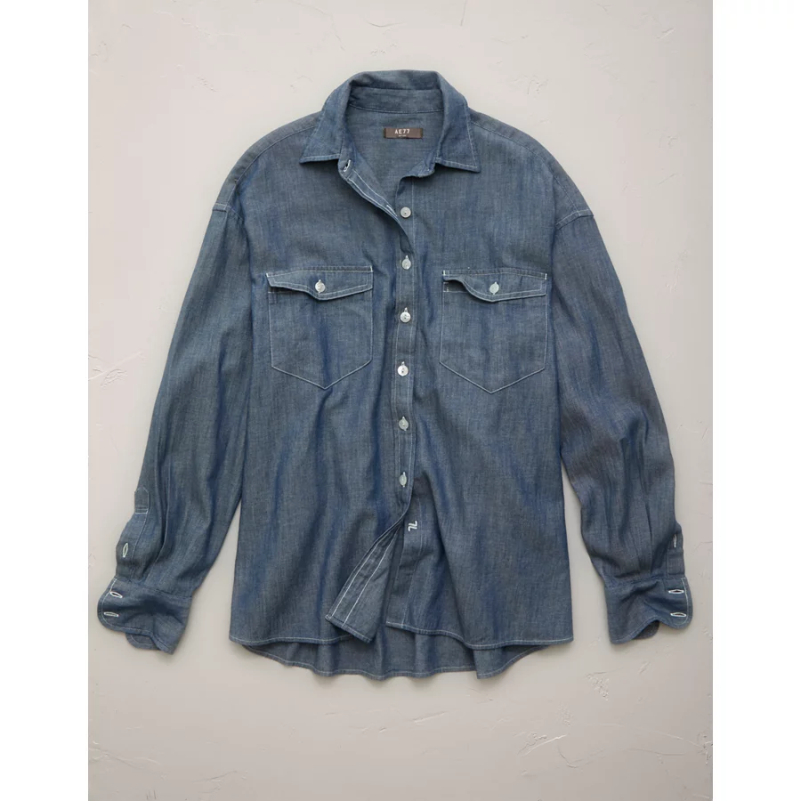 AE77 Oversized Denim Boyfriend Shirt – Dark Rinse