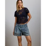 AE 11″ Dreamy Drape Stretch High-Waisted Jort – Light Tinted Wash