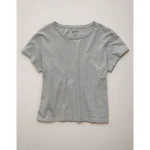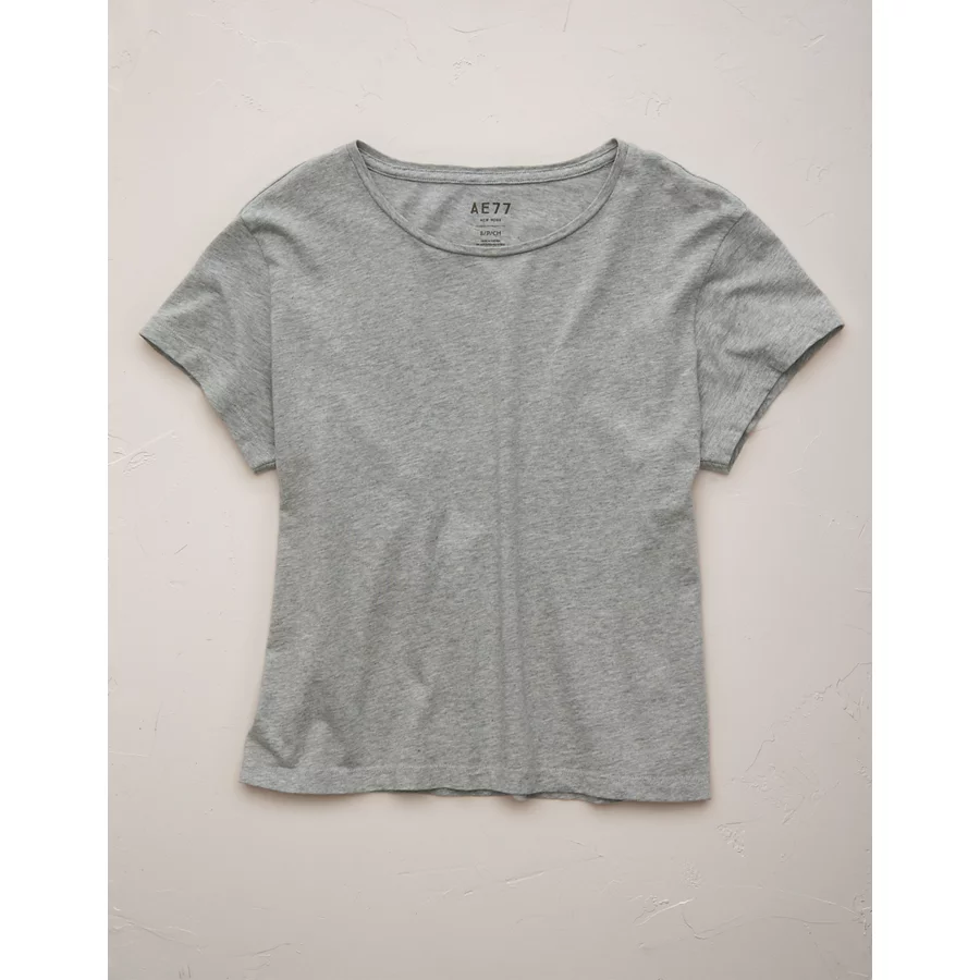 AE77 Premium Boxy Cropped Crewneck T-Shirt – Heather Gray