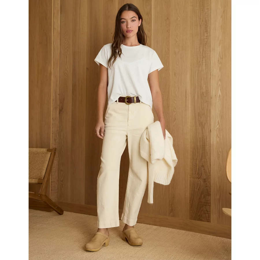 Soft, drapey woven fabric with stretchClassic jean-inspired pocket styling 61% Cotton, 18% TENCEL™ Lyocell, 20% Recycled Cotton, 1% ElastaneMachine washImported
