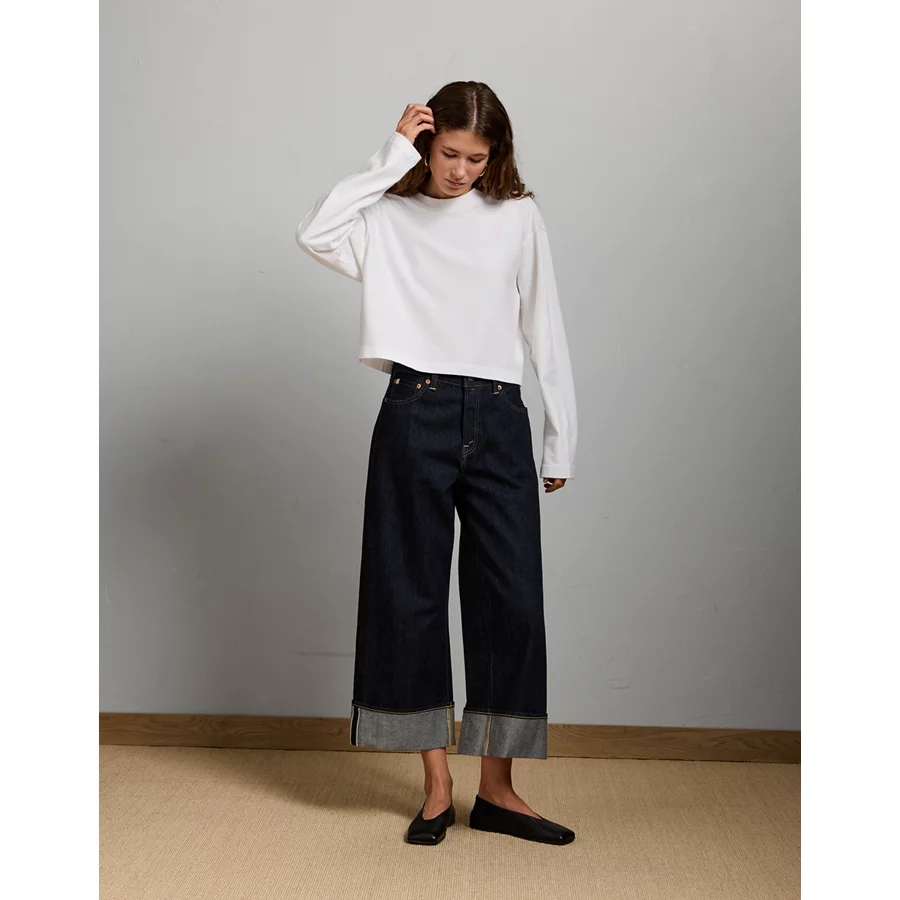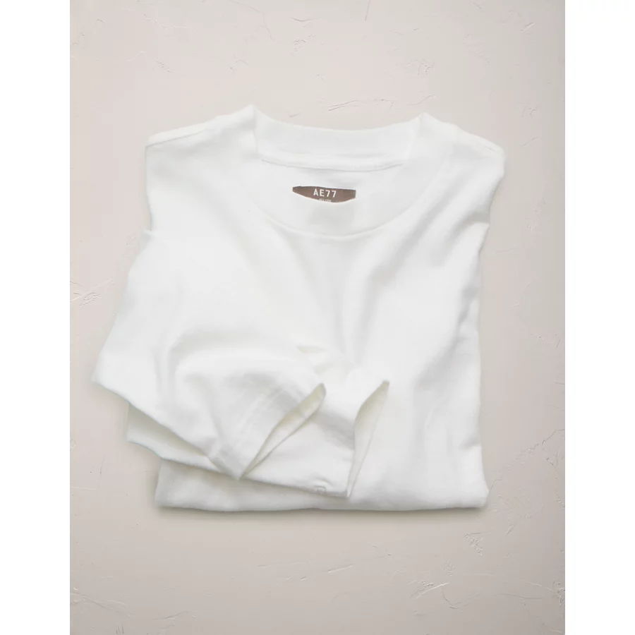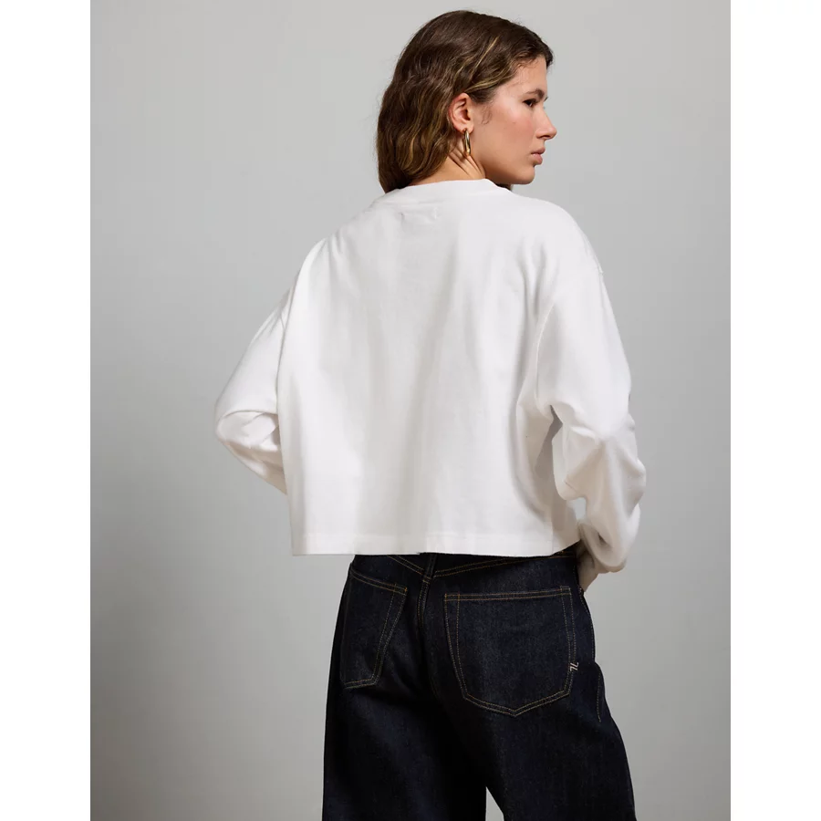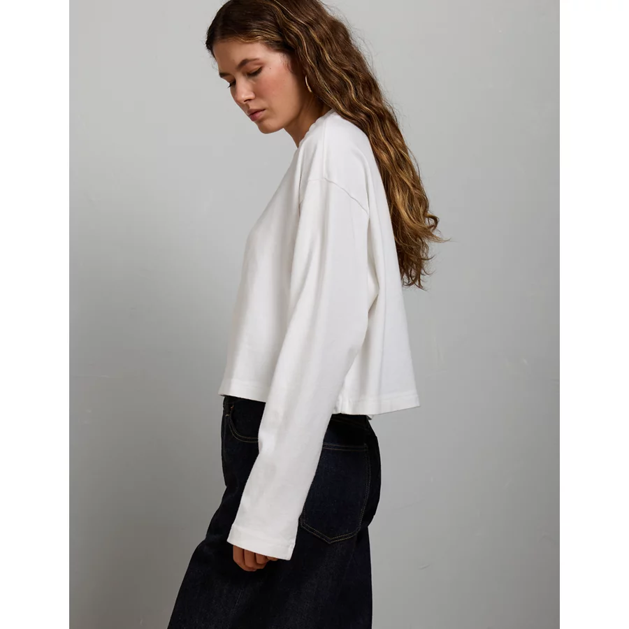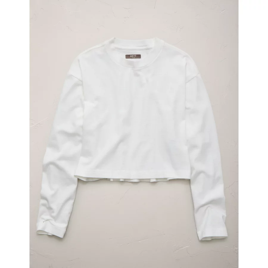 AE77 Premium Boxy Long-Sleeve Cropped T-Shirt – White