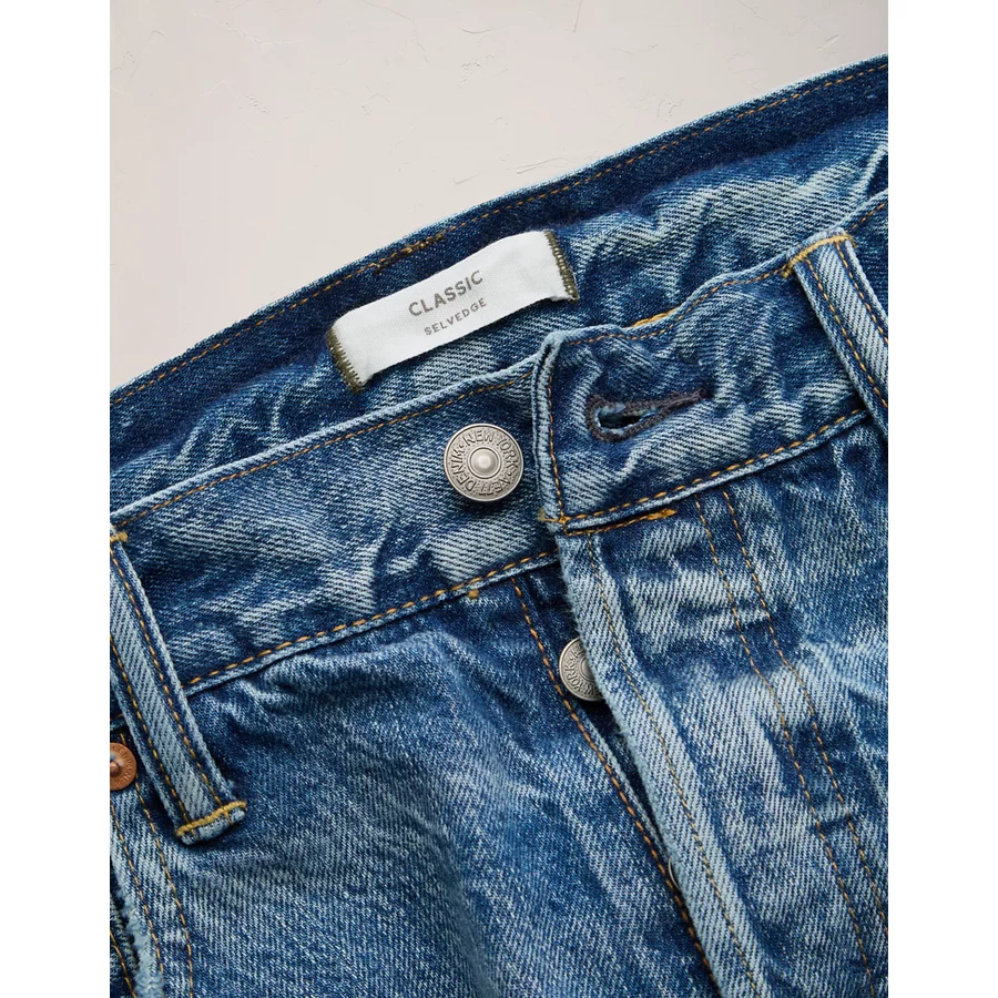 5-pocket styling with hand-set rear pockets and handcrafted hinged bartacks