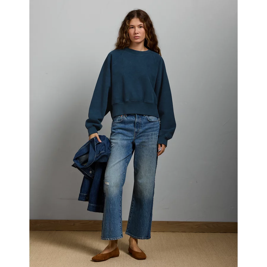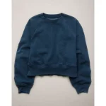 AE77 Premium Cropped Fleece Sweatshirt – Dark Blue