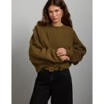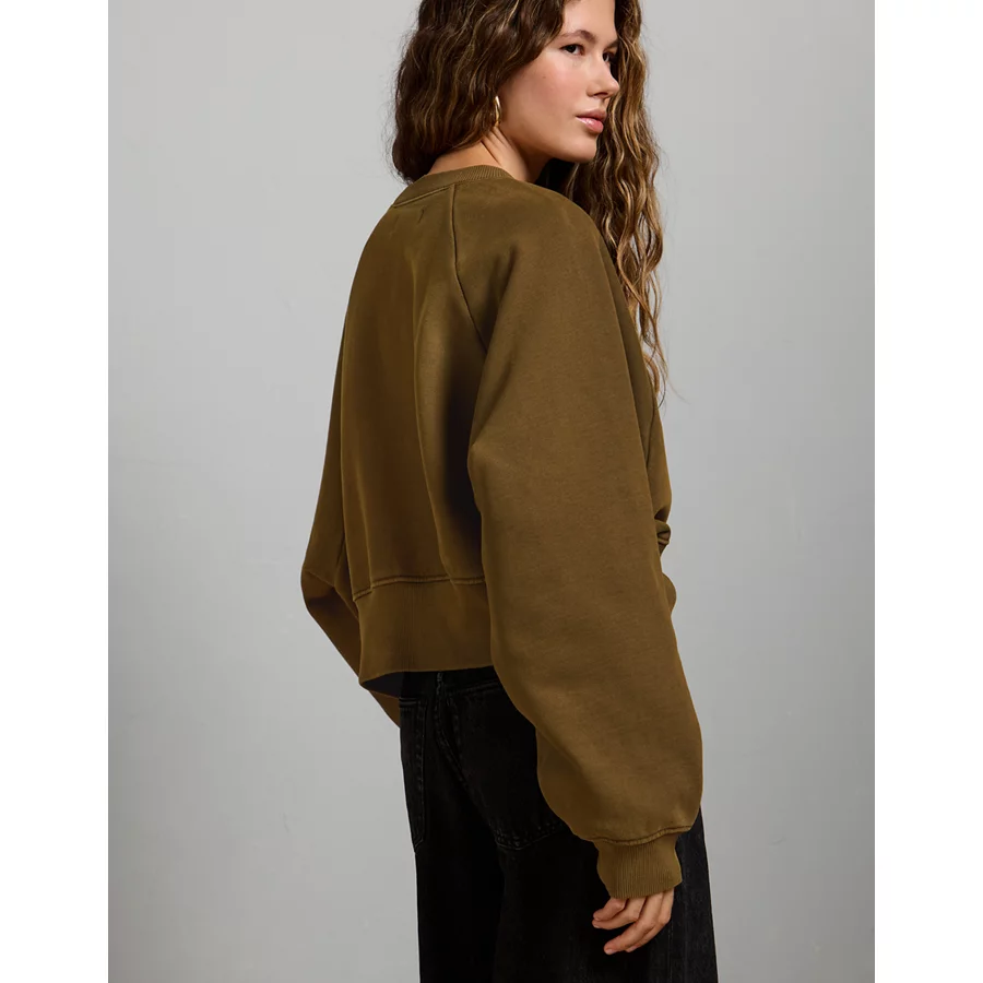AE77 Premium Cropped Fleece Sweatshirt – Olive