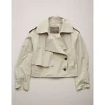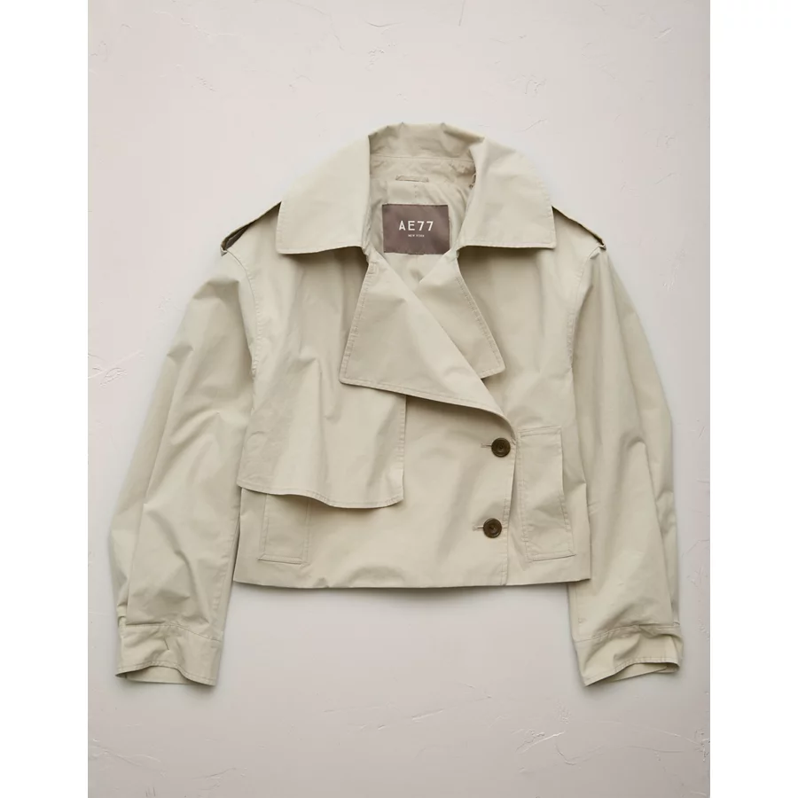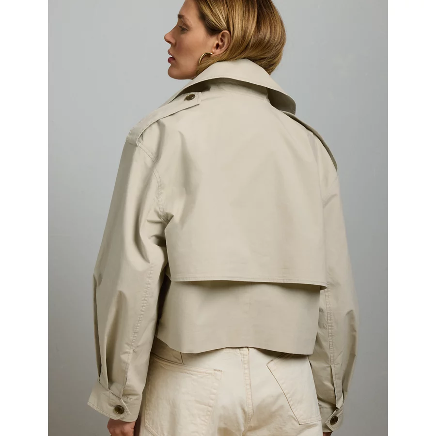 AE77 Premium Cropped Utility Trench Coat – Bone Khaki