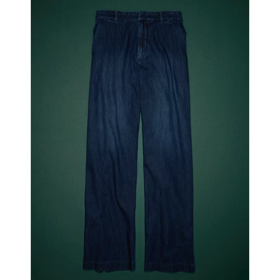 AE77 Premium Denim Pleated Trouser – Dark Wash