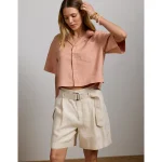 AE 6″ Stretch High-Waisted Pleated Trouser Short – Vintage Vanilla