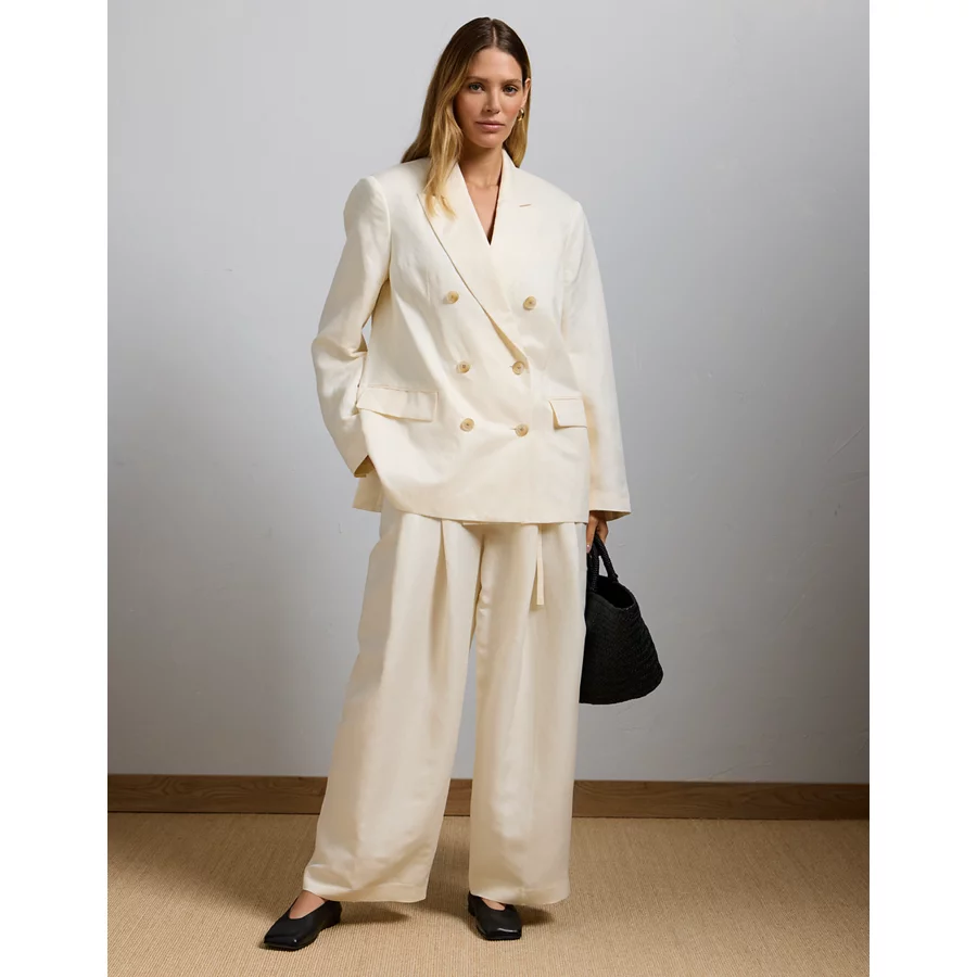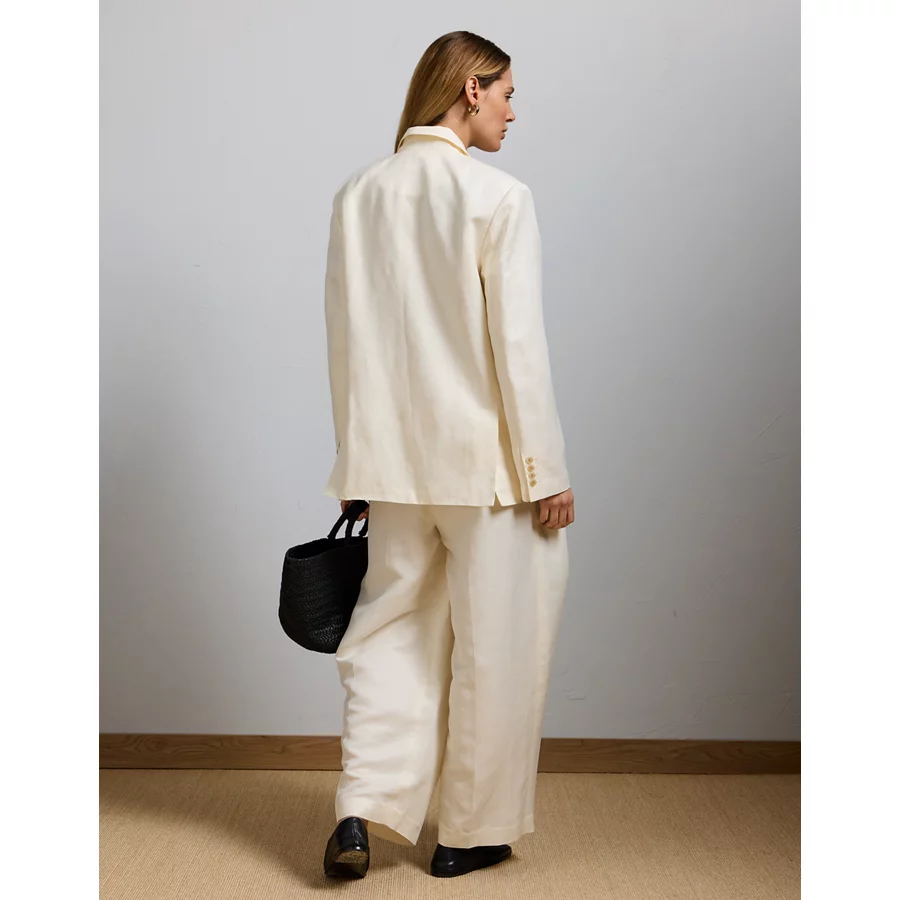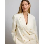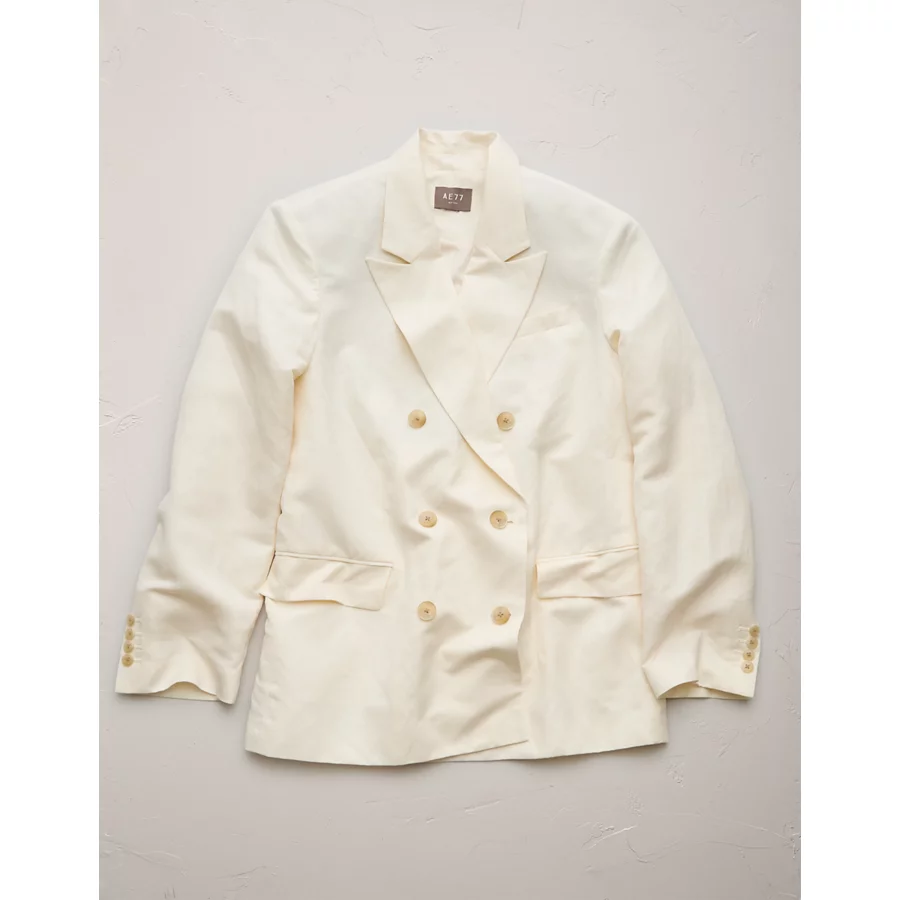 AE77 Premium Linen-Silk Blend Double-Breasted Blazer – White