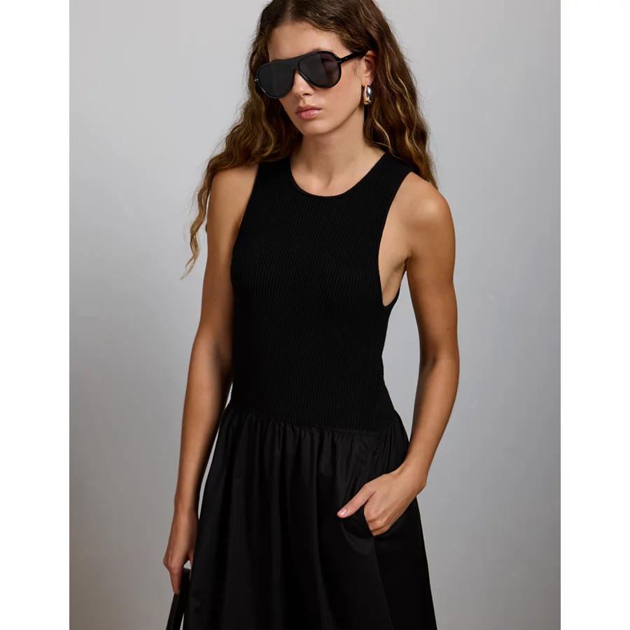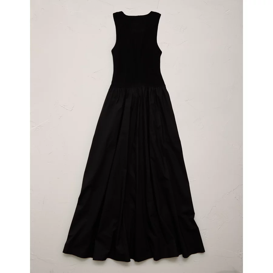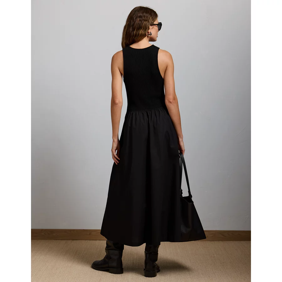 AE77 Premium Mixed Media Midi Dress – Black