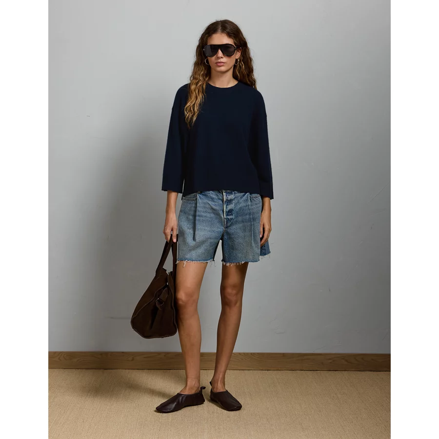 AE77 Premium Oversized Cashmere Sweater T-Shirt – Indigo