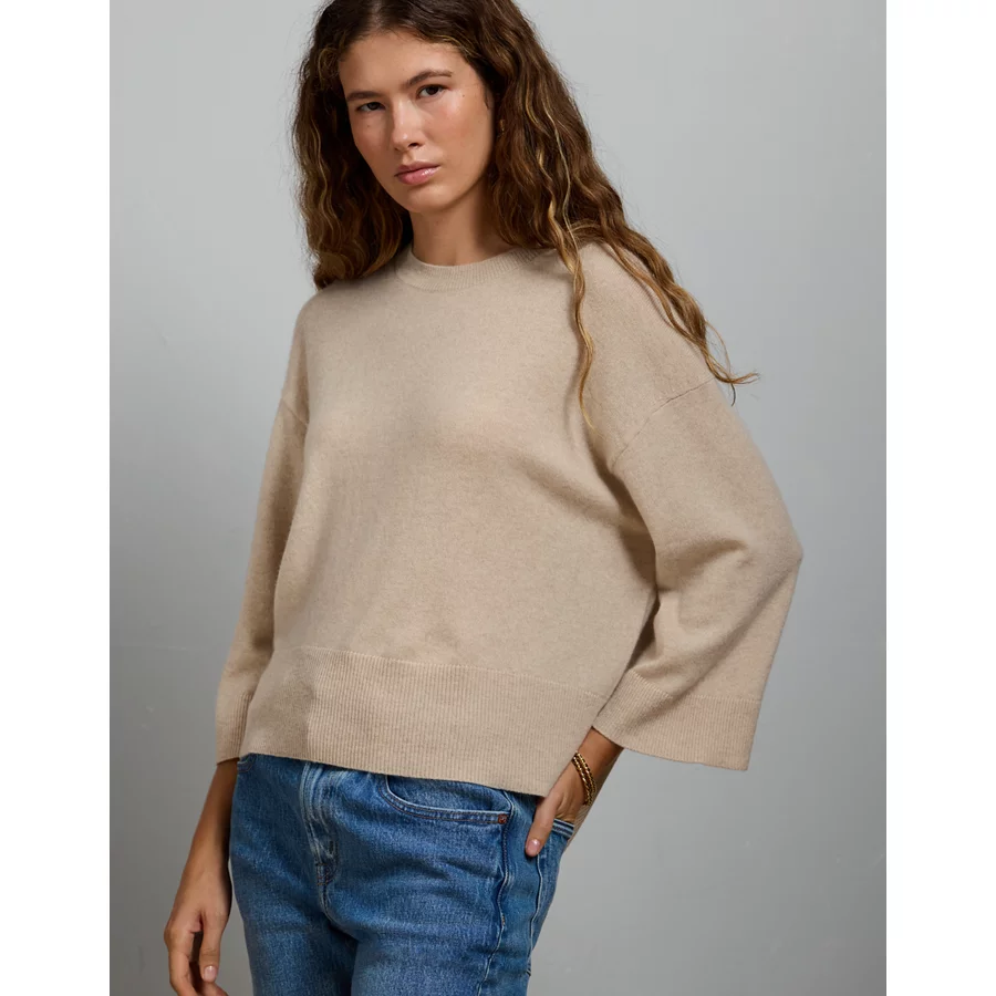 AE77 Premium Oversized Cashmere Sweater T-Shirt – Oatmeal Heather