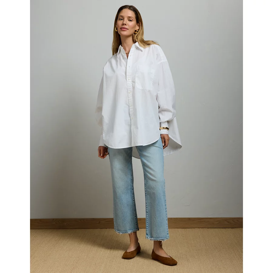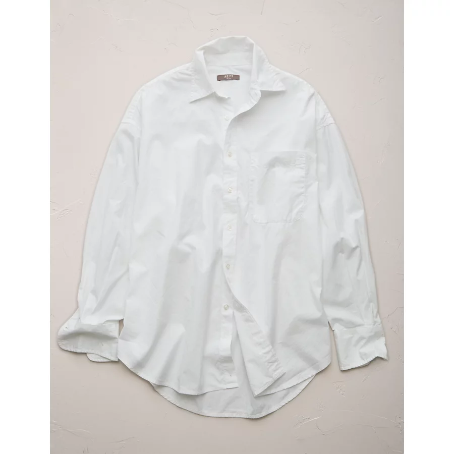 AE77 Premium Oversized Poplin Boyfriend Shirt – White