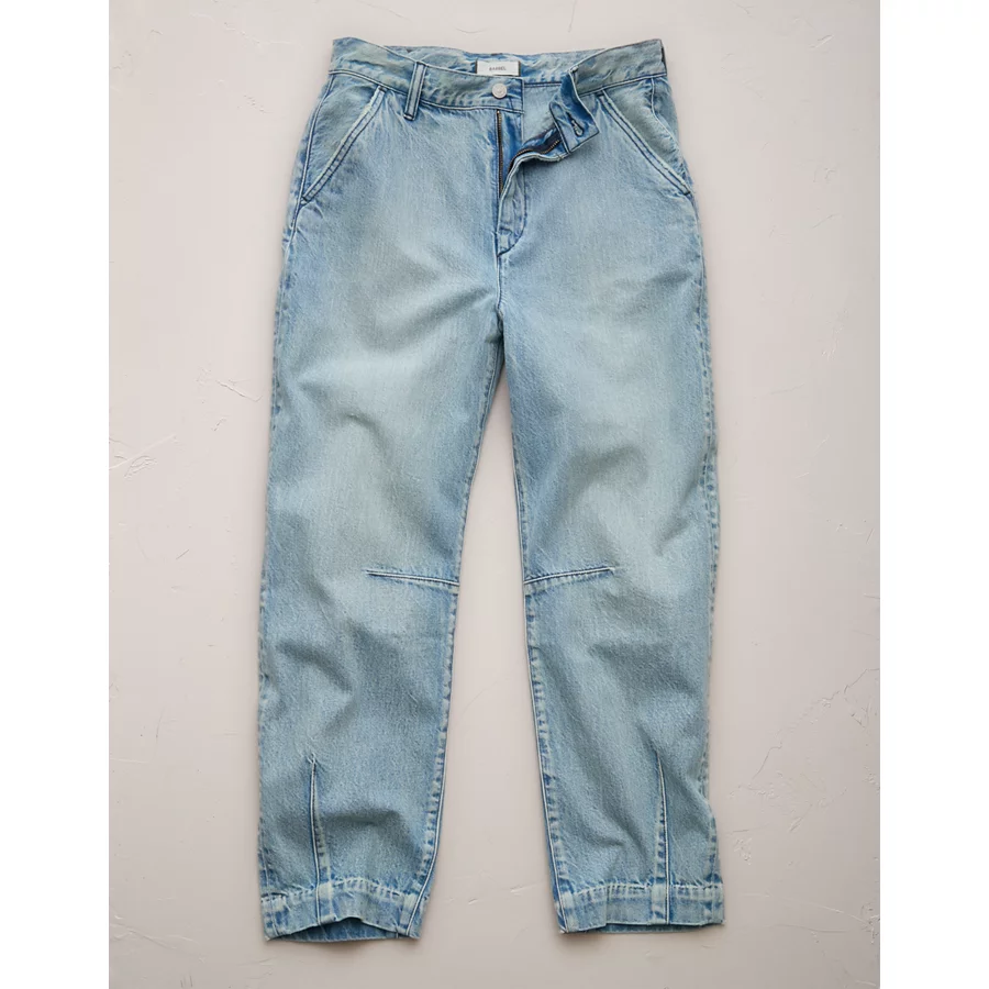 AE77 Premium Pleated Barrel Jean – Light Wash