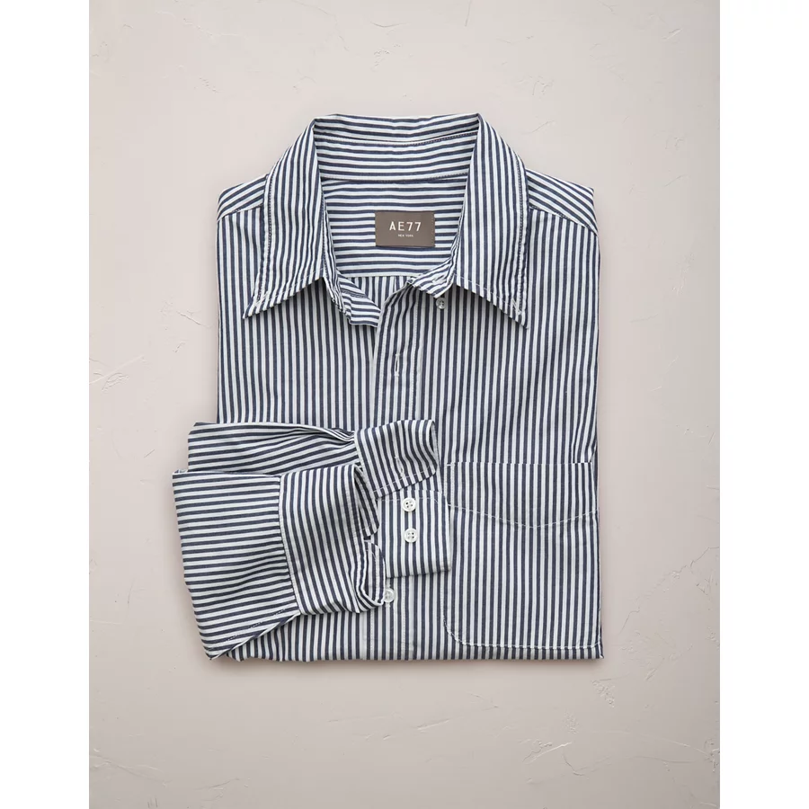 AE77 Premium Poplin Button-Up Shirt – Classic Blue