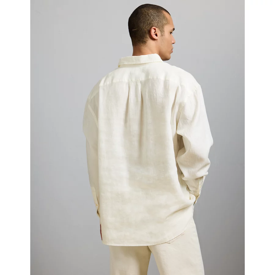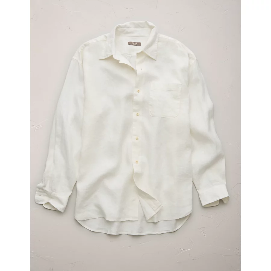 AE77 Premium Relaxed Linen Button-Up Shirt – White