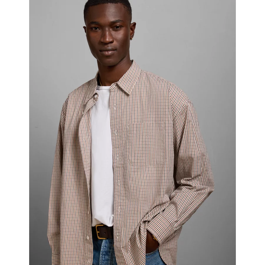 AE77 Premium Relaxed Striped Poplin Button-Up Shirt – Khaki