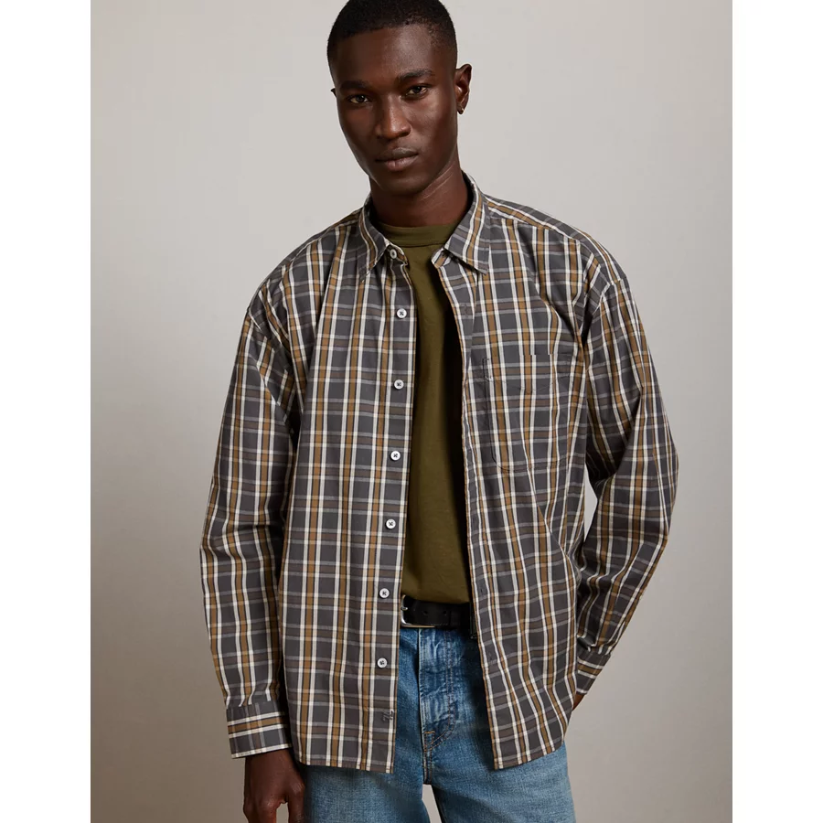 AE77 Premium Relaxed Striped Poplin Button-Up Shirt – Multi