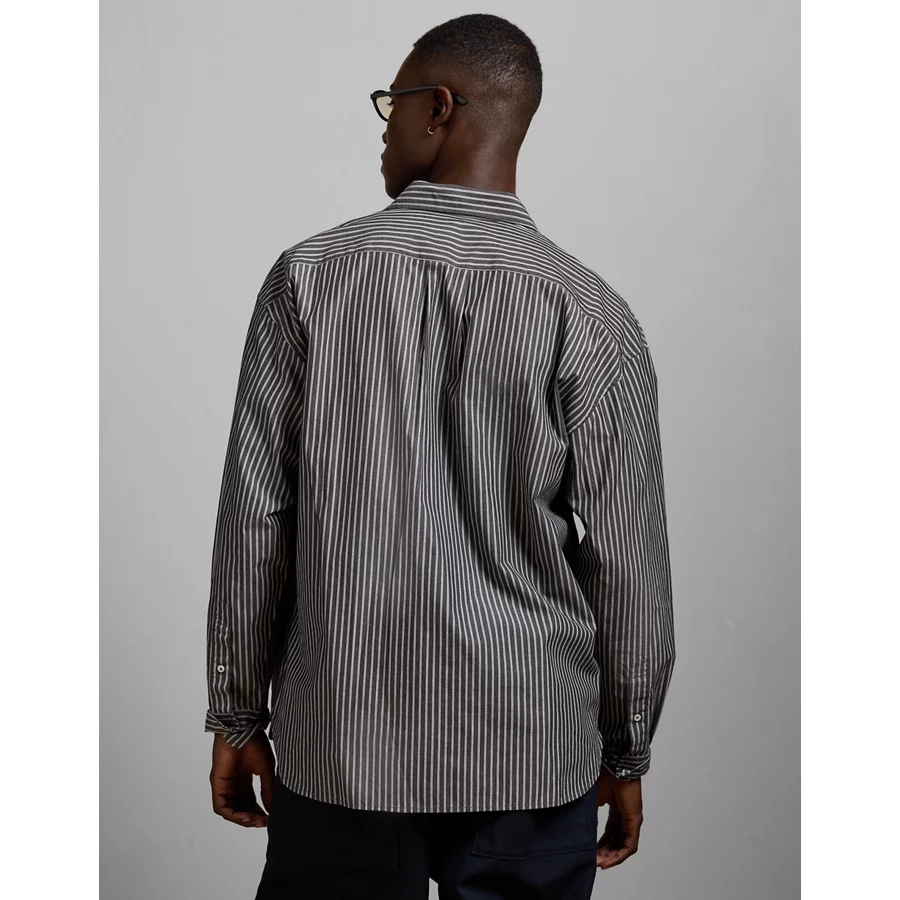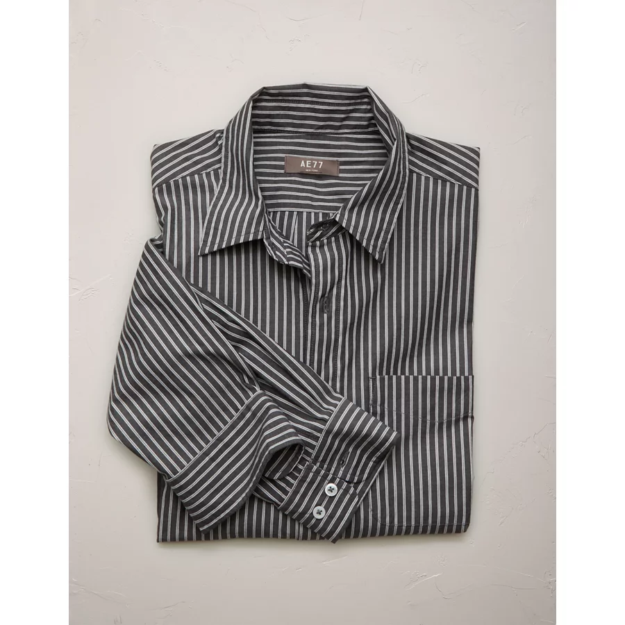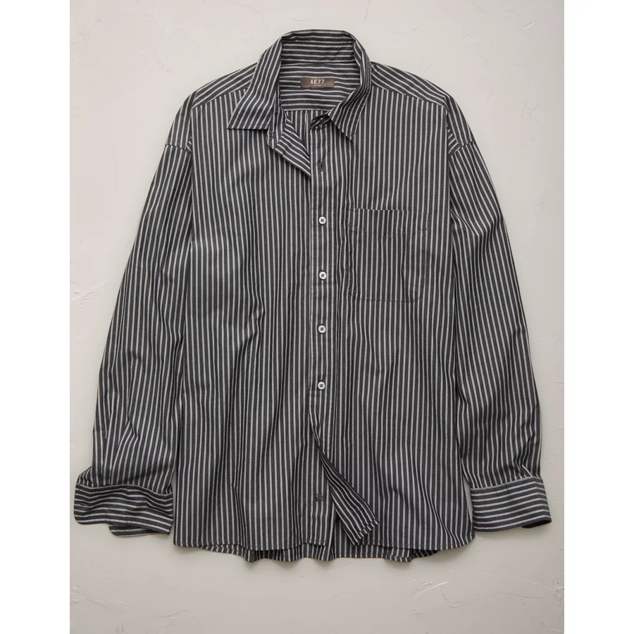 AE77 Premium Relaxed Striped Poplin Button-Up Shirt - Multi