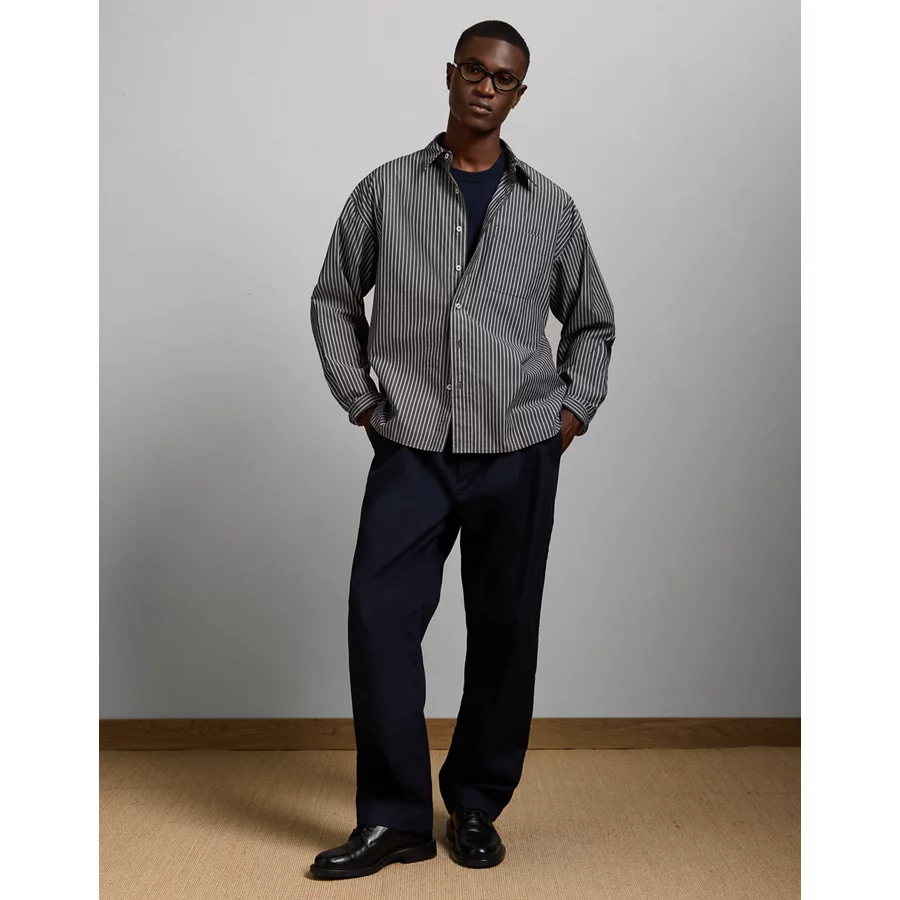 AE77 Premium Relaxed Striped Poplin Button-Up Shirt – Navy