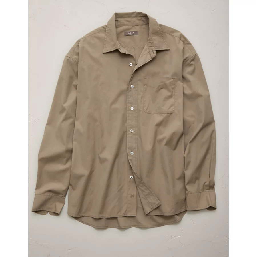 AE77 Premium Relaxed Striped Poplin Button-Up Shirt – Taupe
