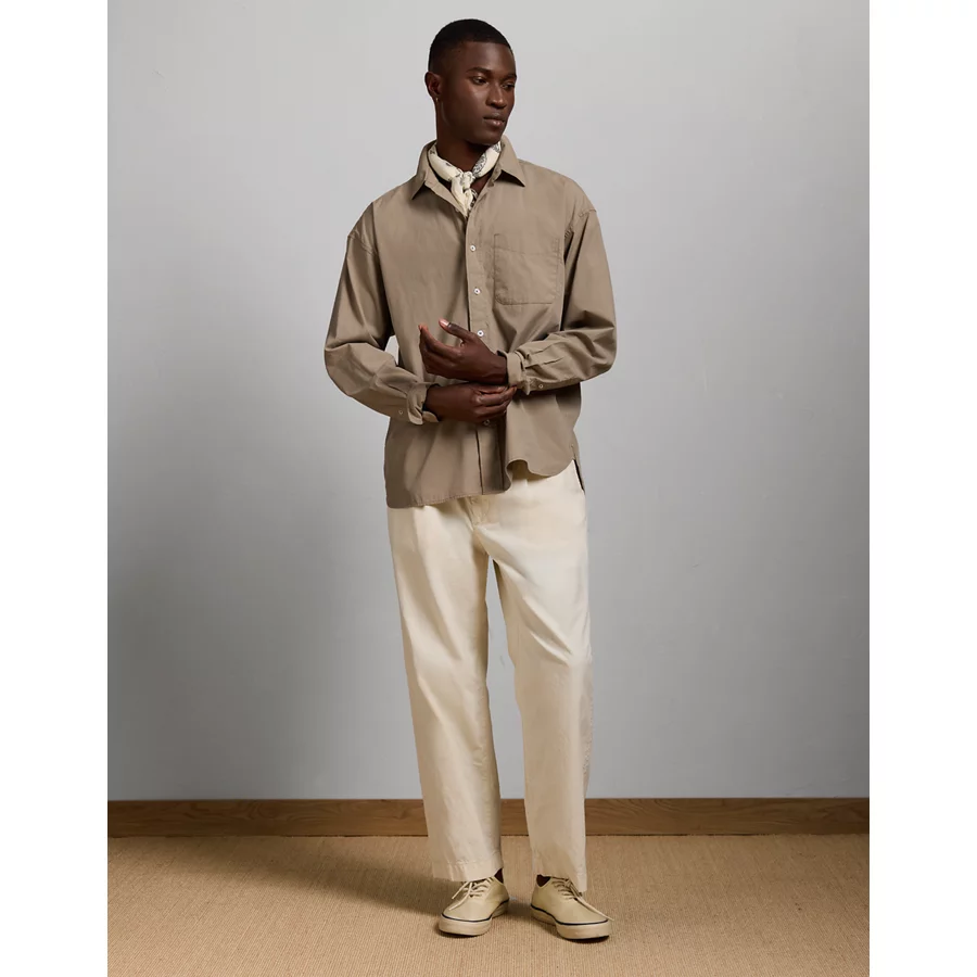 AE77 Premium Relaxed Striped Poplin Button-Up Shirt - Khaki